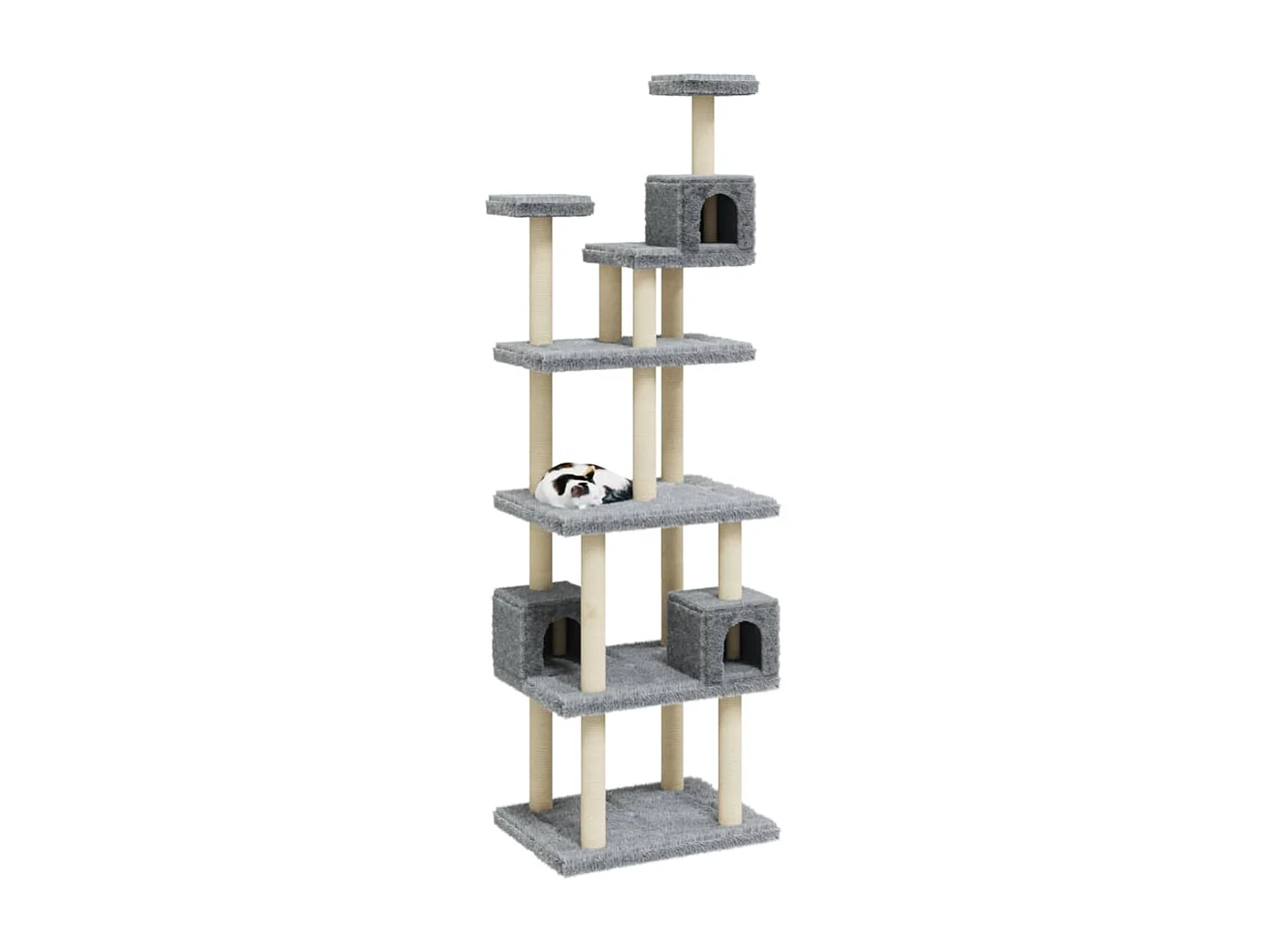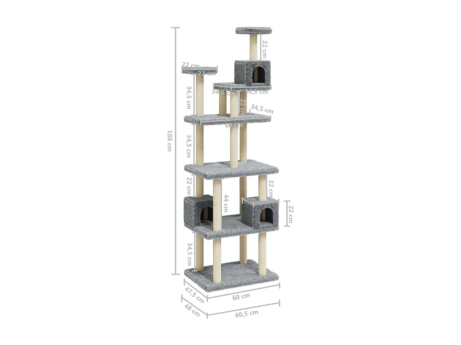 Mucahit Arbre à chat avec griffoirs en sisal Gris clair 199 cm