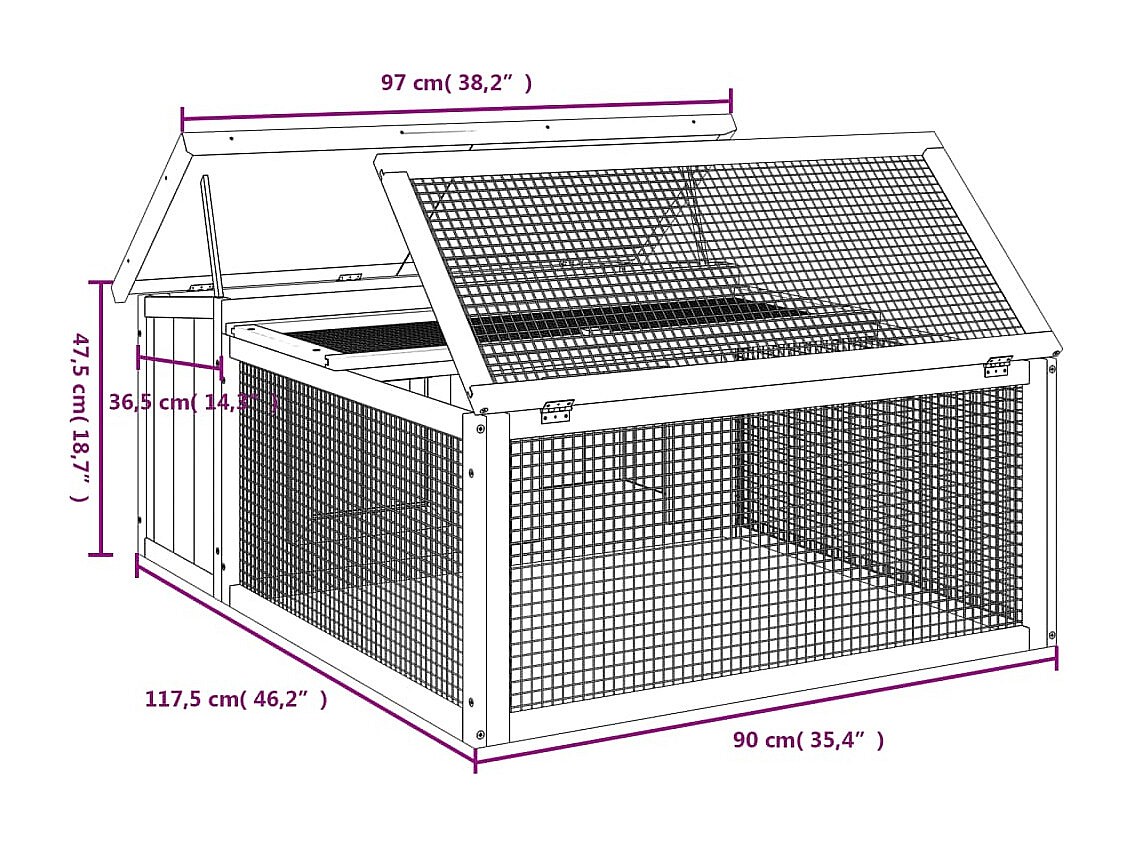 Cerys Clapier gris 117,5x97x47,5 cm bois de pin massif