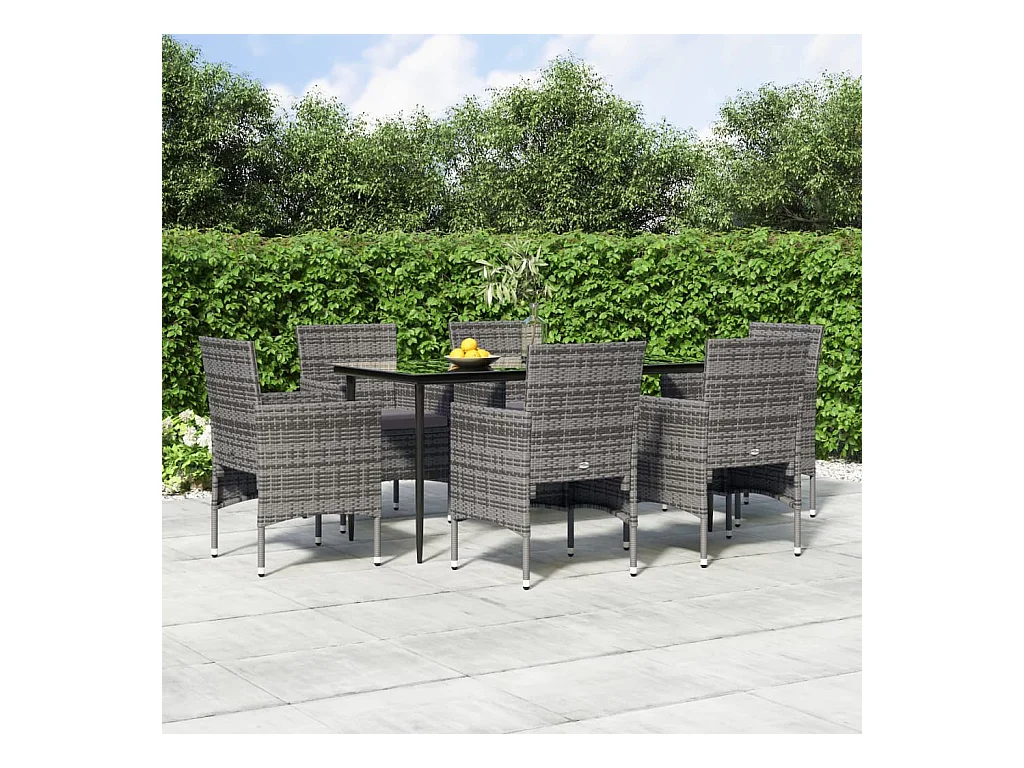 Hillsboro Ensemble à manger de jardin coussins 7pcs Gris et noir