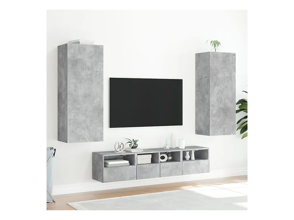 Chaffee Meuble TV mural gris béton 40,5x30x102 cm bois d'ingénierie