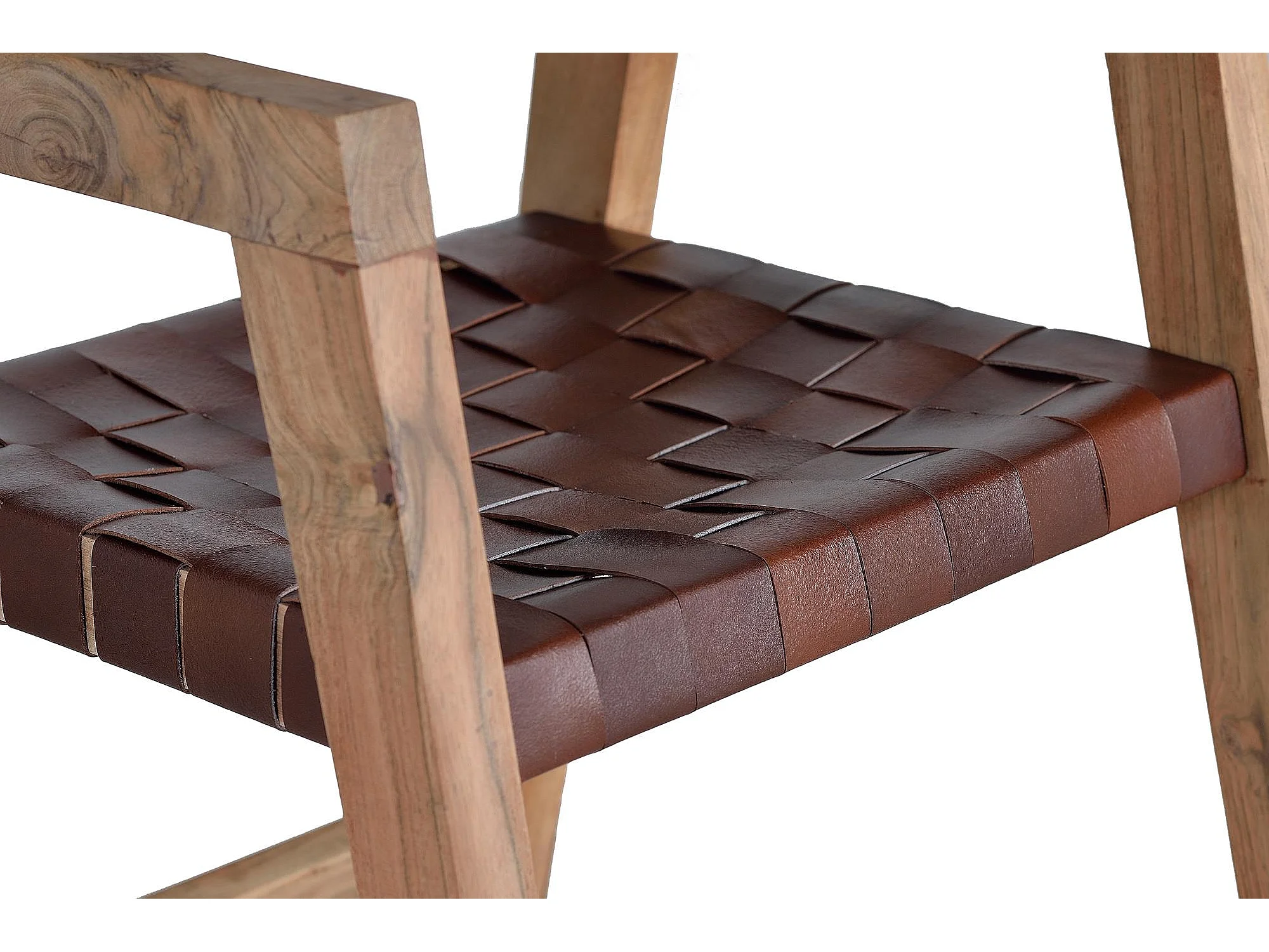 Chaise en cuir naturel et bois de manguier