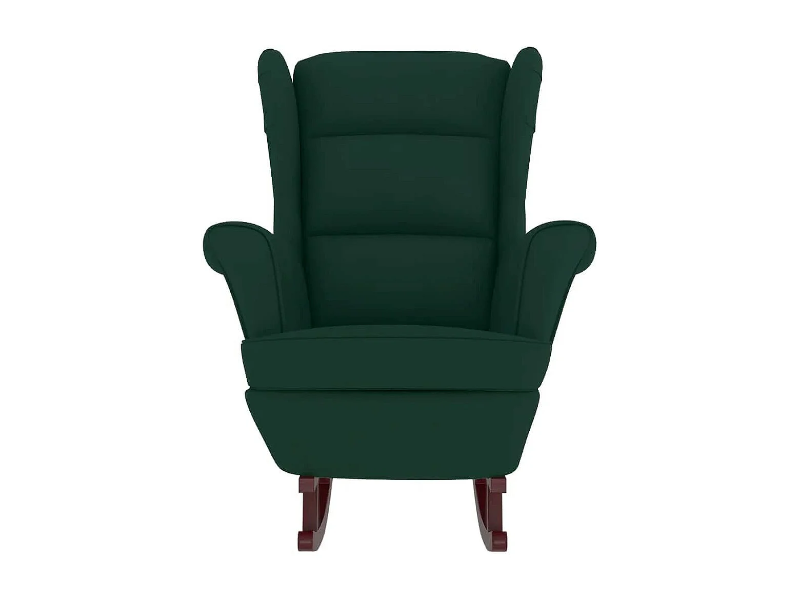Fauteuil à bascule à oreilles en velours vert foncé bois massif