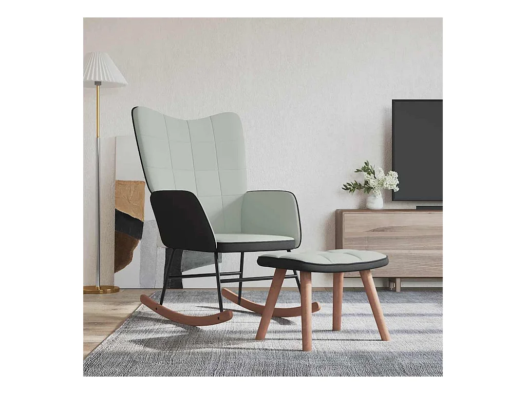 Chaise à bascule avec repose-pied Gris clair Velours et PVC