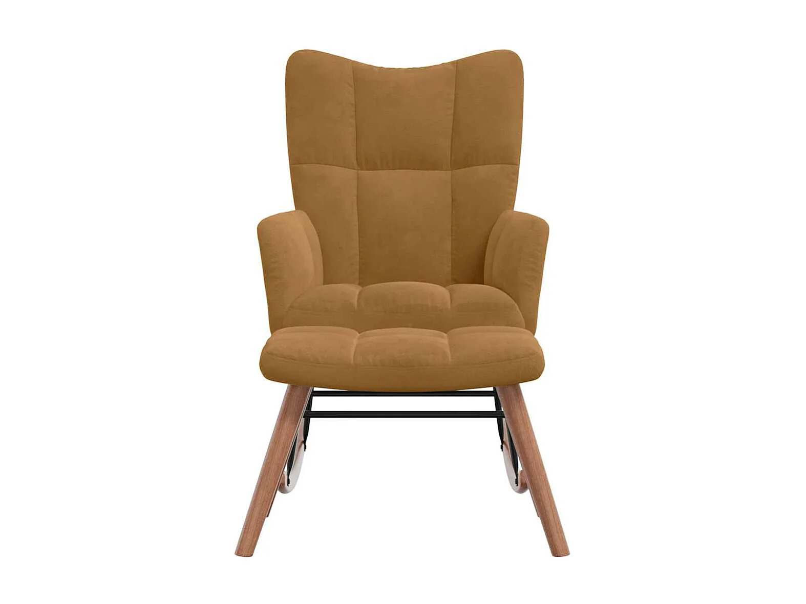 Fauteuil à bascule à oreilles en velours marron bois massif