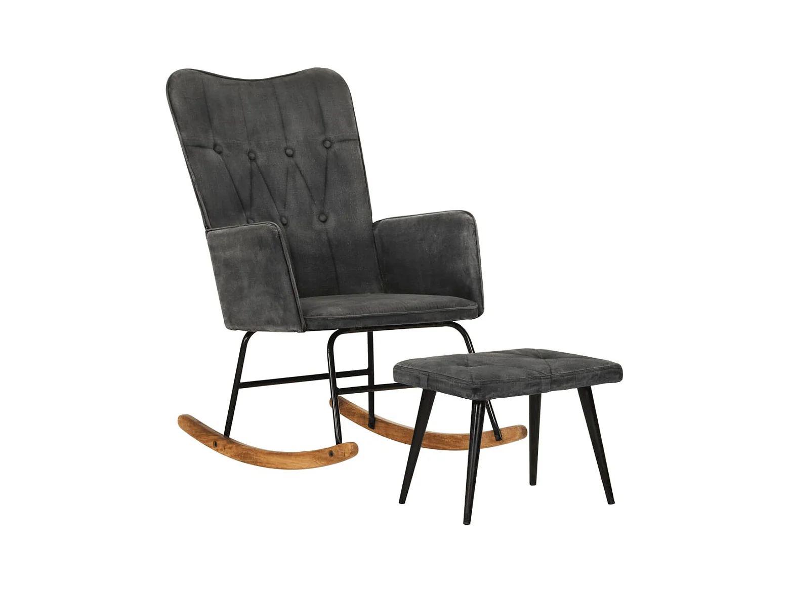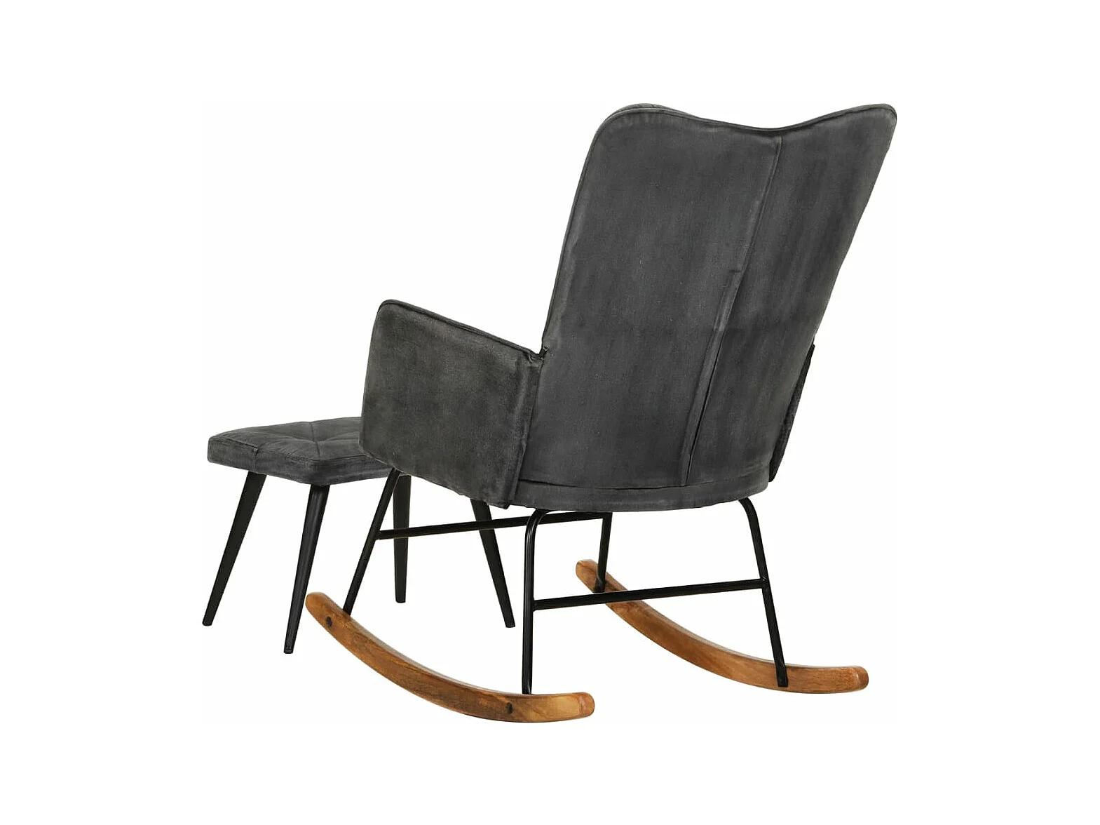 Chaise à bascule avec repose-pied Noir vintage Toile