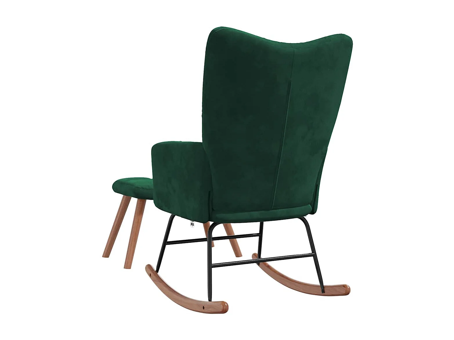 Fauteuil à bascule à oreilles en velours vert foncé bois massif
