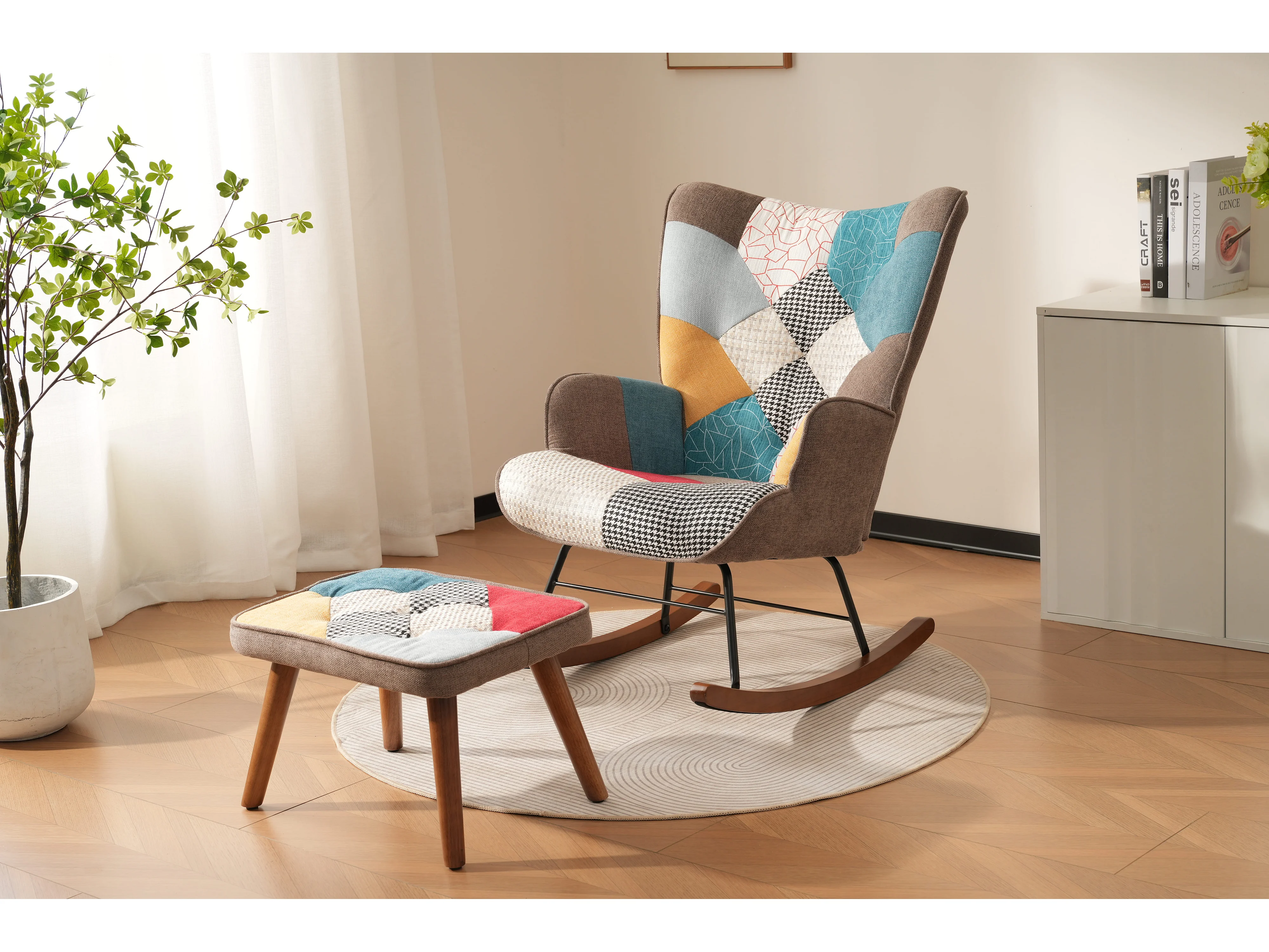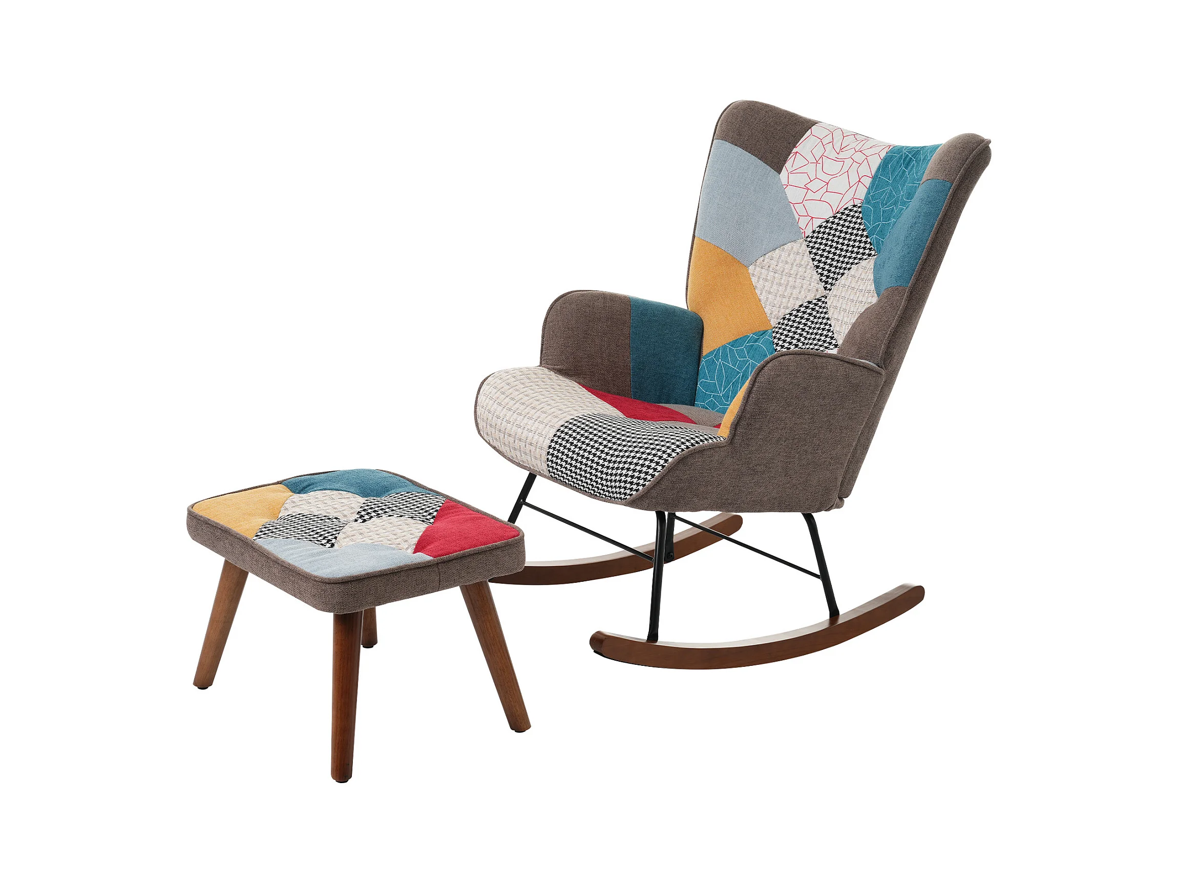 Chaise à bascule avec repose-pieds - 69.5 x 50 x 88.5 cm - Éponge + fibres de polypropylène - Multicolor