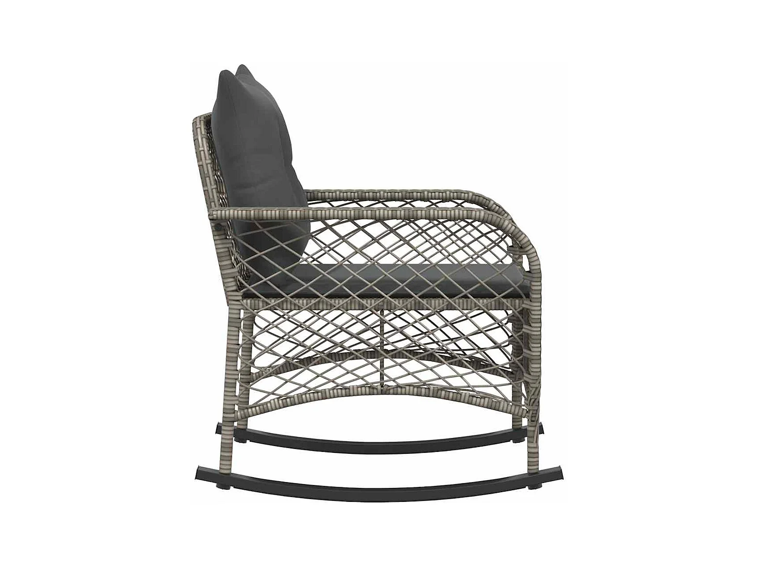 Chaise à bascule de jardin avec coussins gris résine tressée