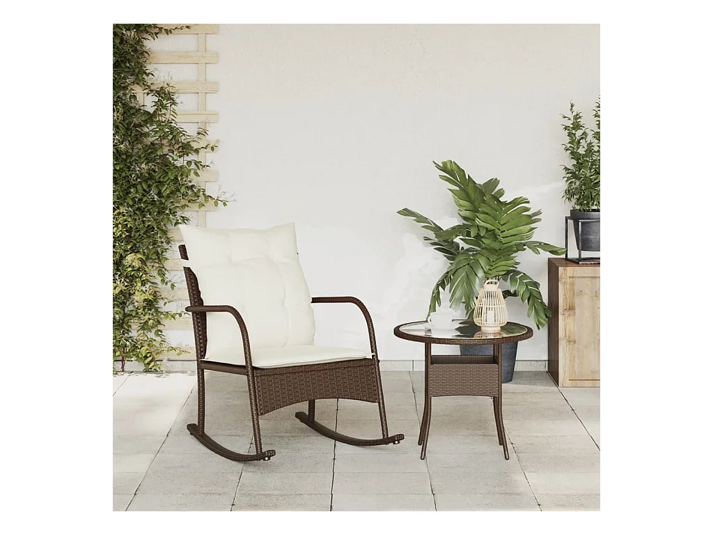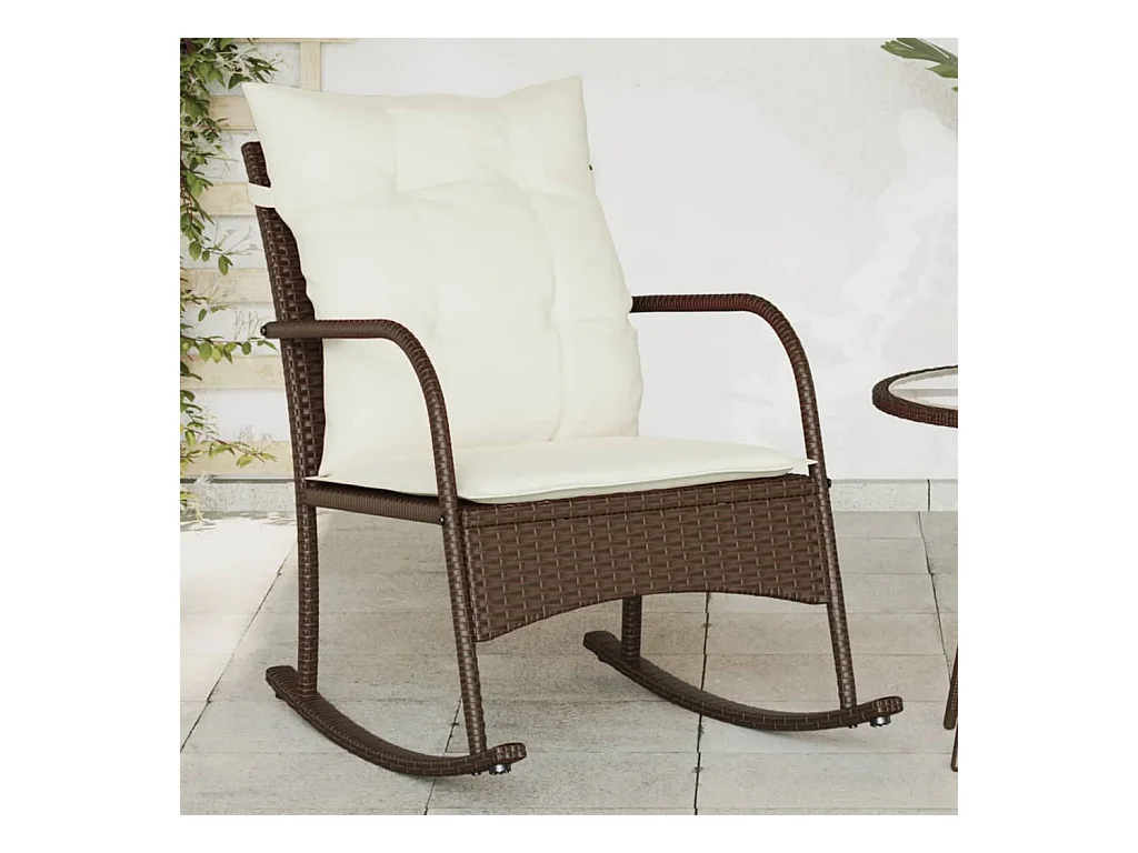 Chaise à bascule de jardin avec coussins marron résine tressée FR742861