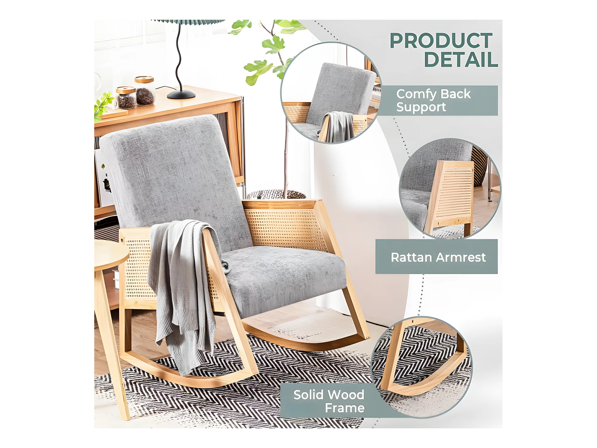 Chaise à bascule en bois massif avec rotin en plastique pe