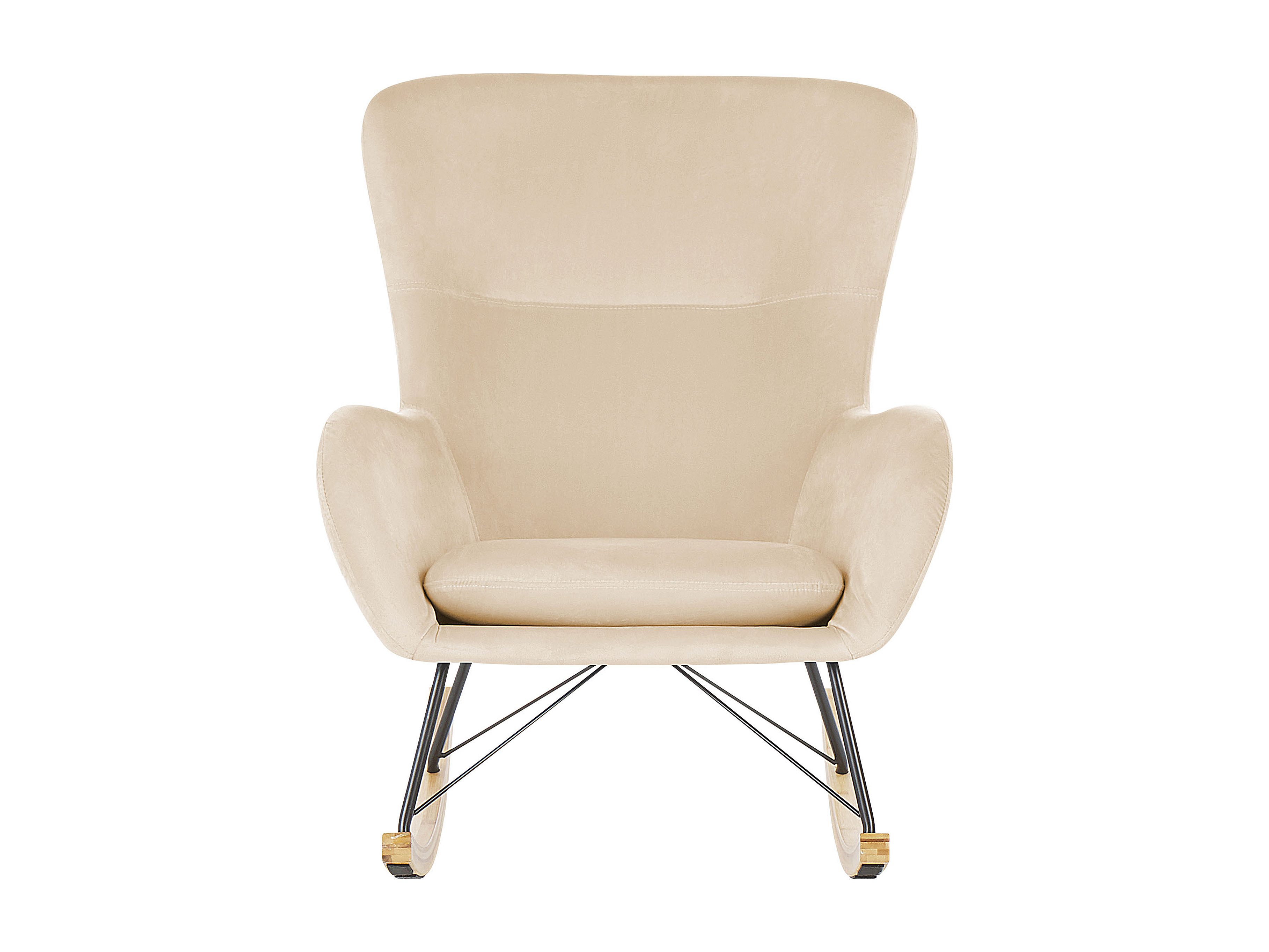 Fauteuil à bascule pieds en bois massif d'hévéa Crème Velours