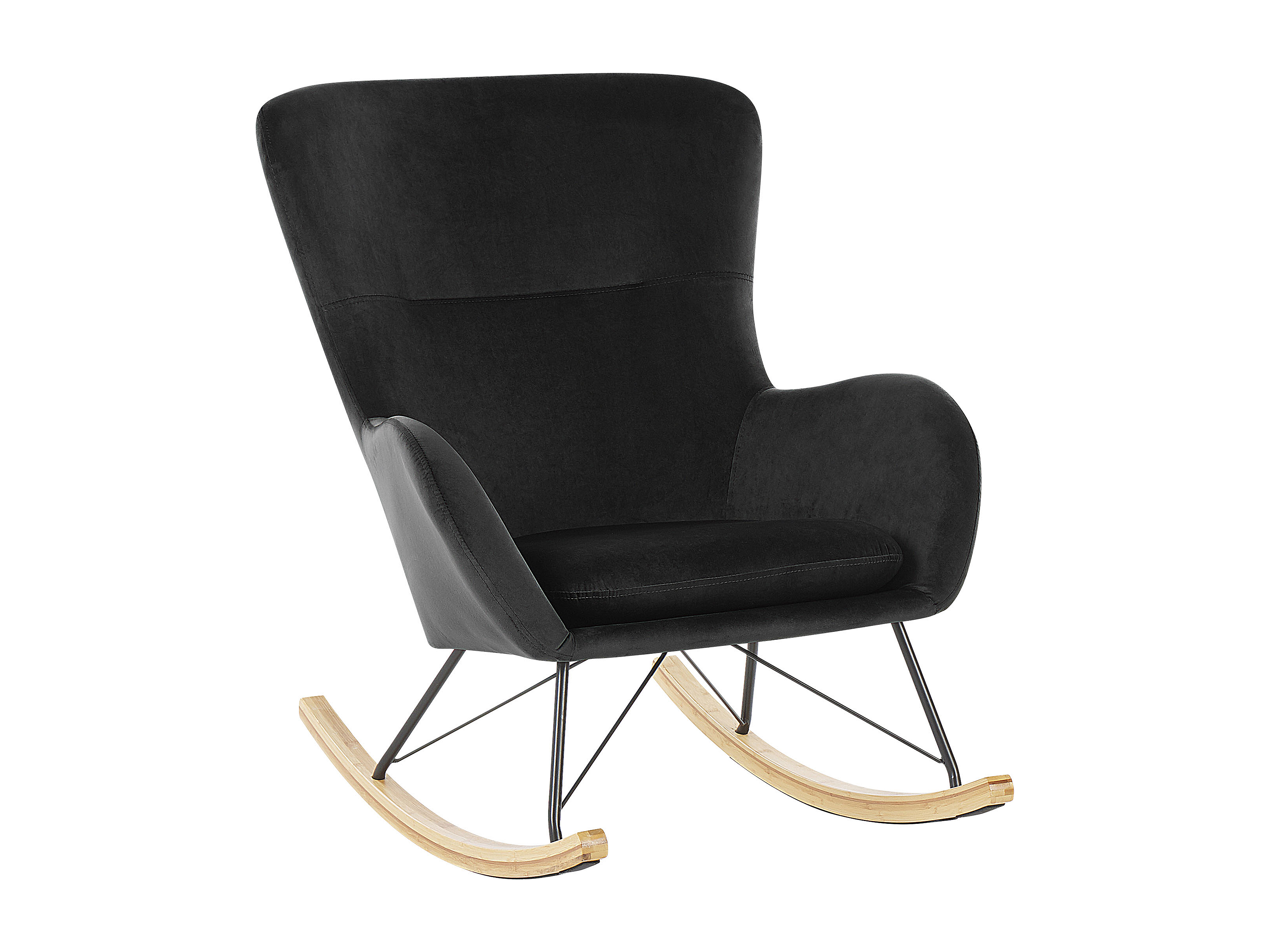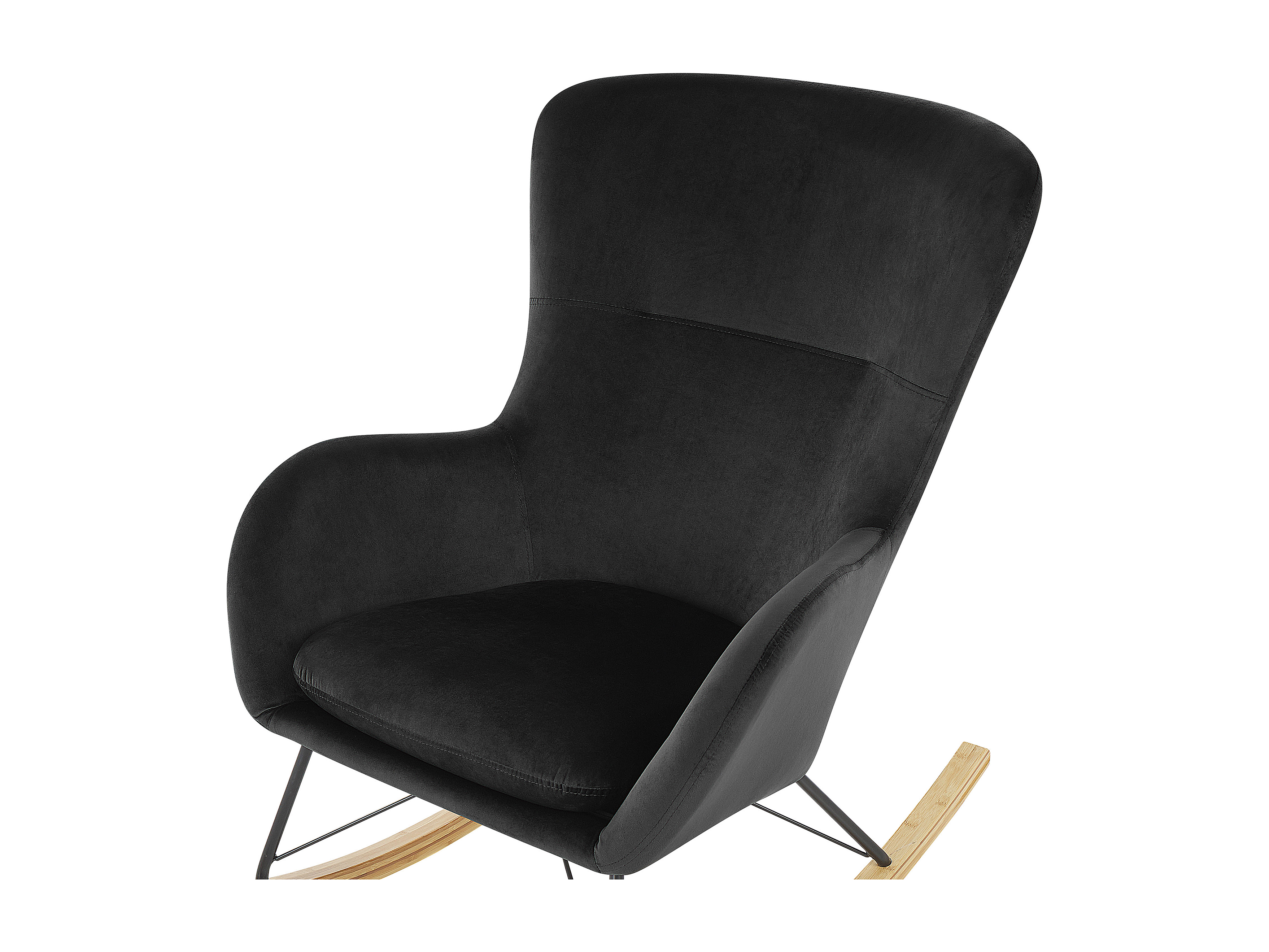 Chaise à bascule avec pieds en bois et tabouret Noir Velours