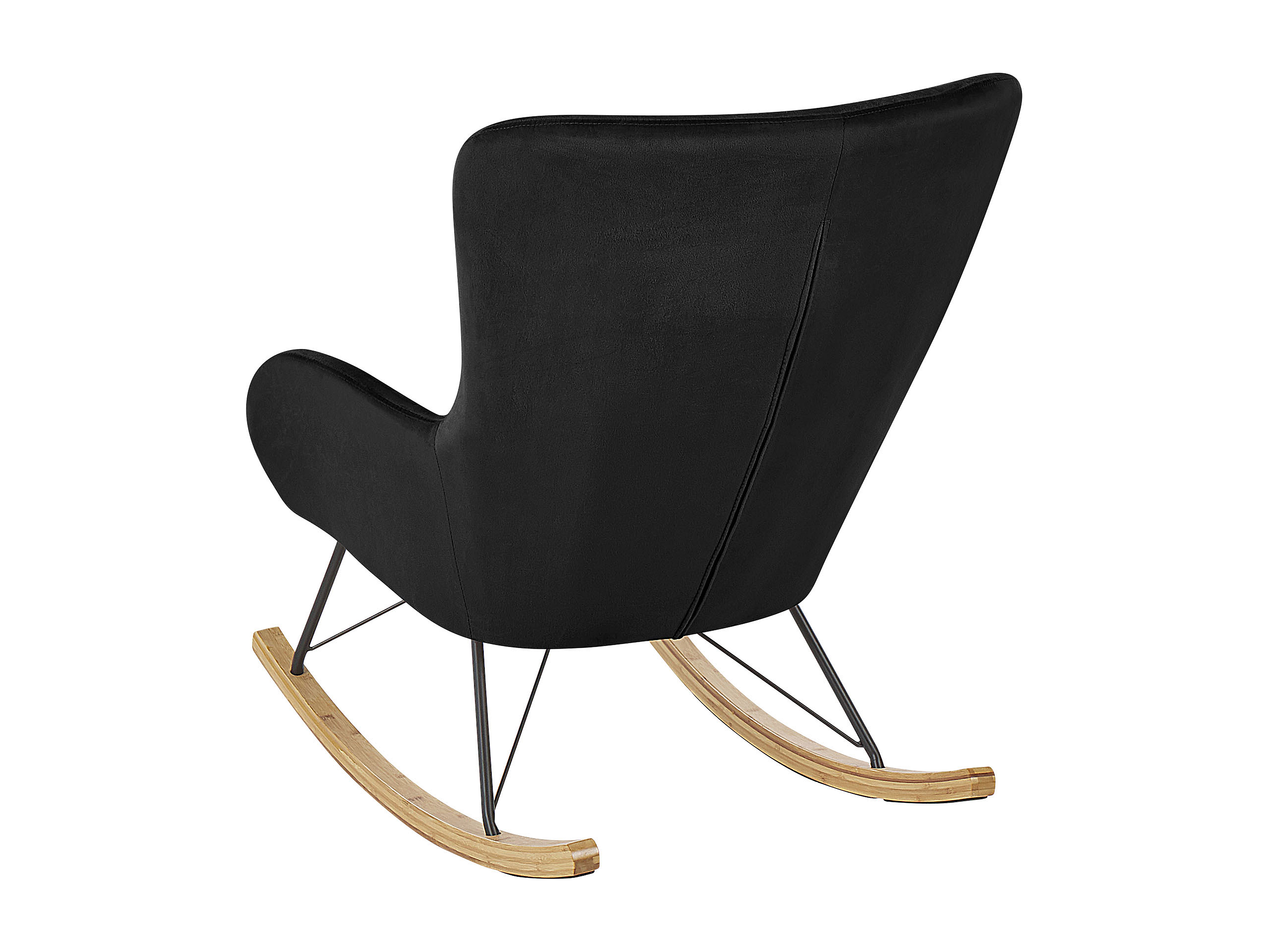 Fauteuil à bascule et pieds en bois massif d'hévéa Noir Velours