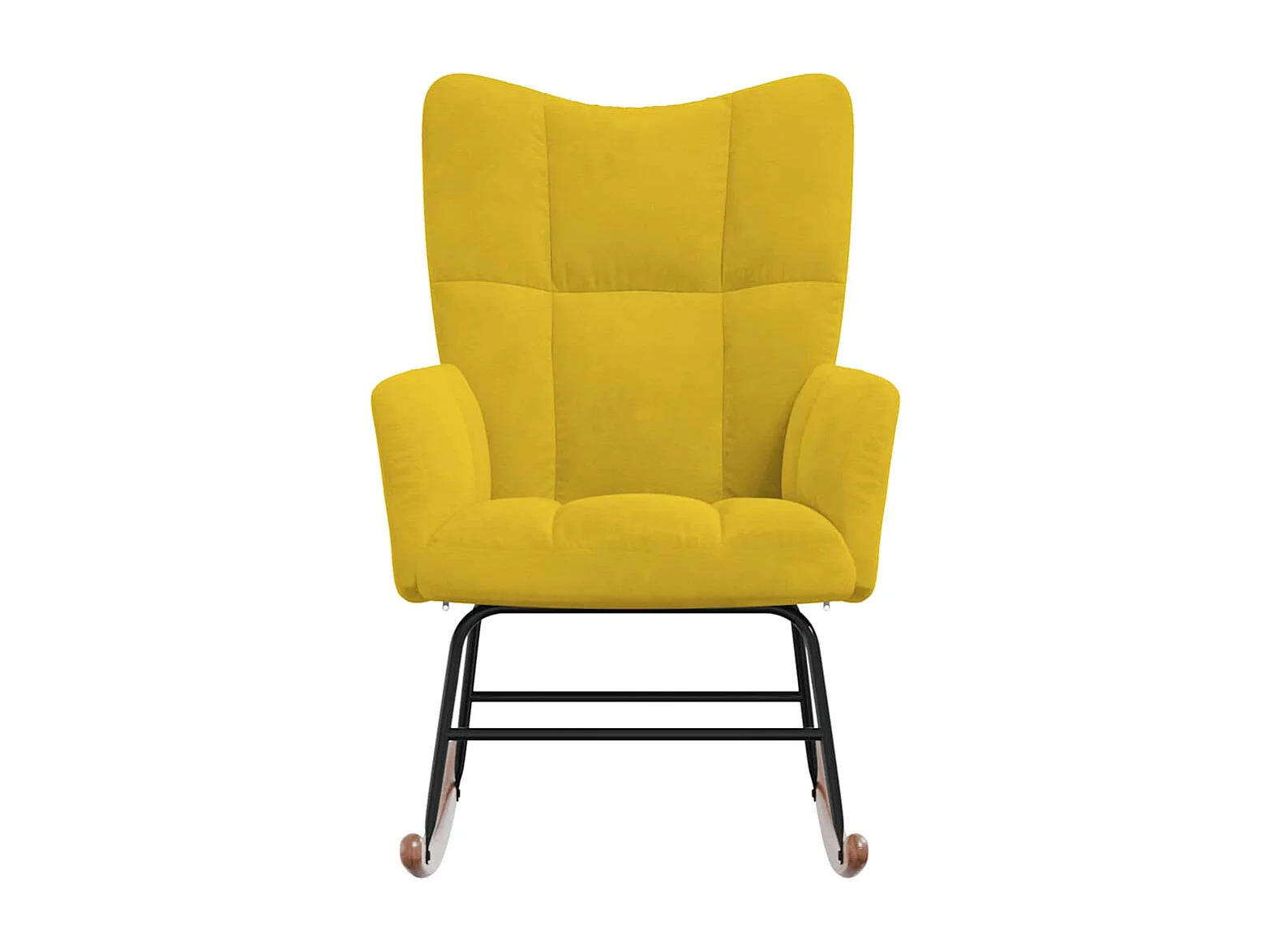 Fauteuil à bascule à oreilles en velours jaune bois massif
