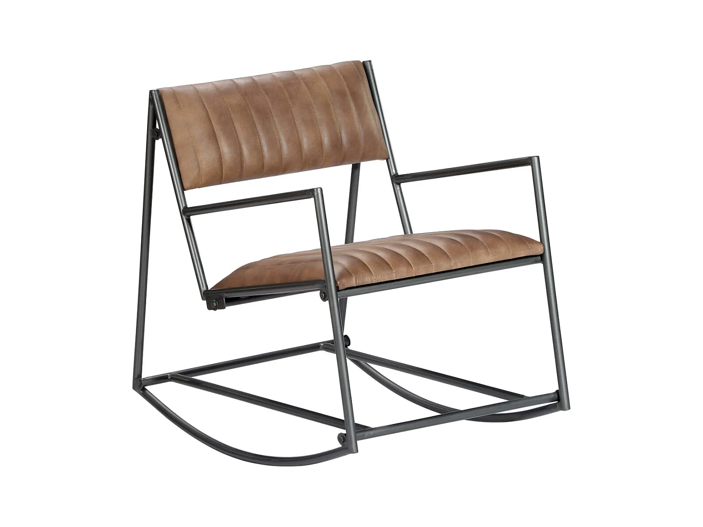 Fauteuil à bascule Marron Cuir véritable BE68048