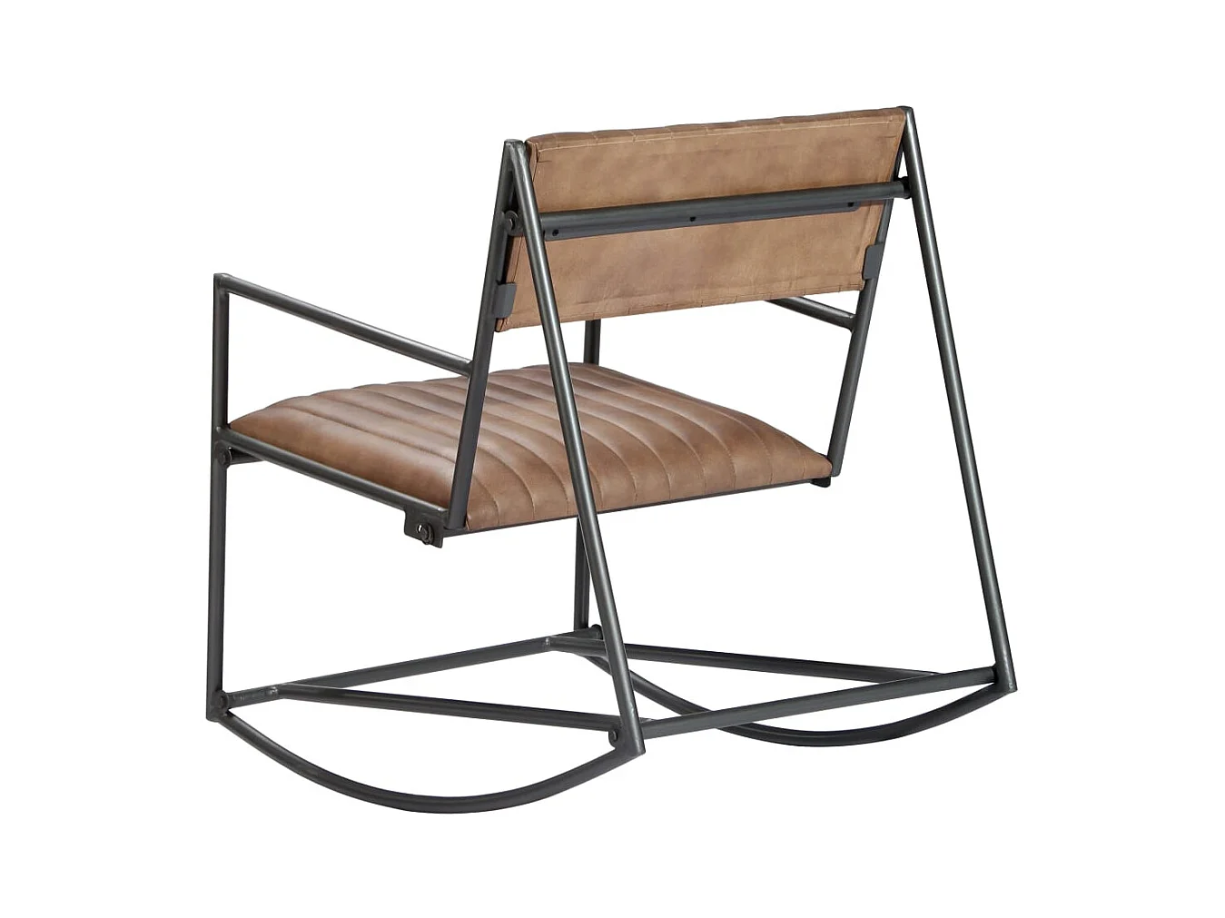 Chaise à bascule Marron Cuir véritable et manguier massif