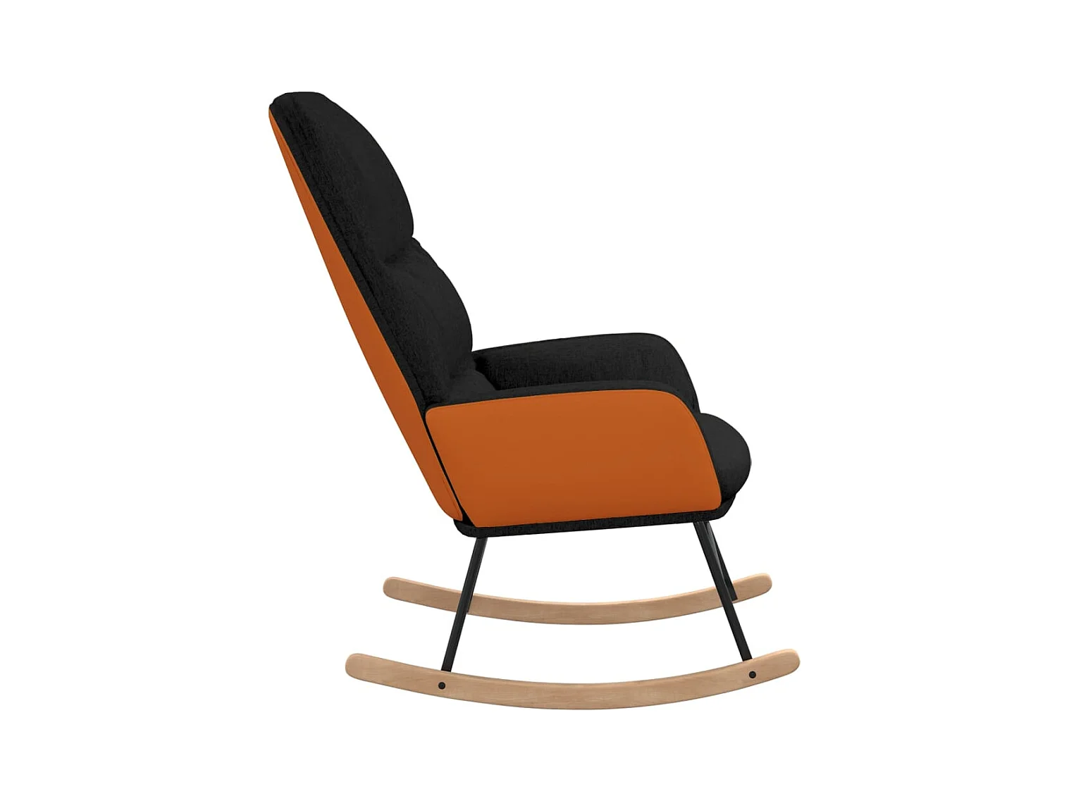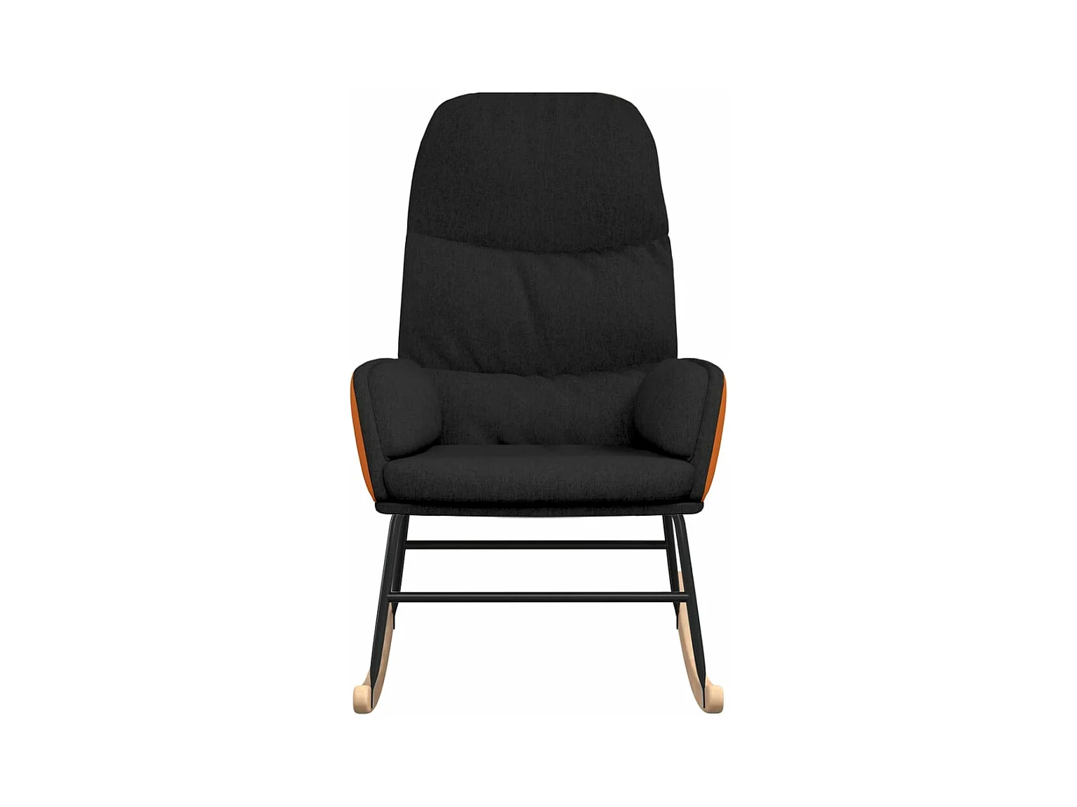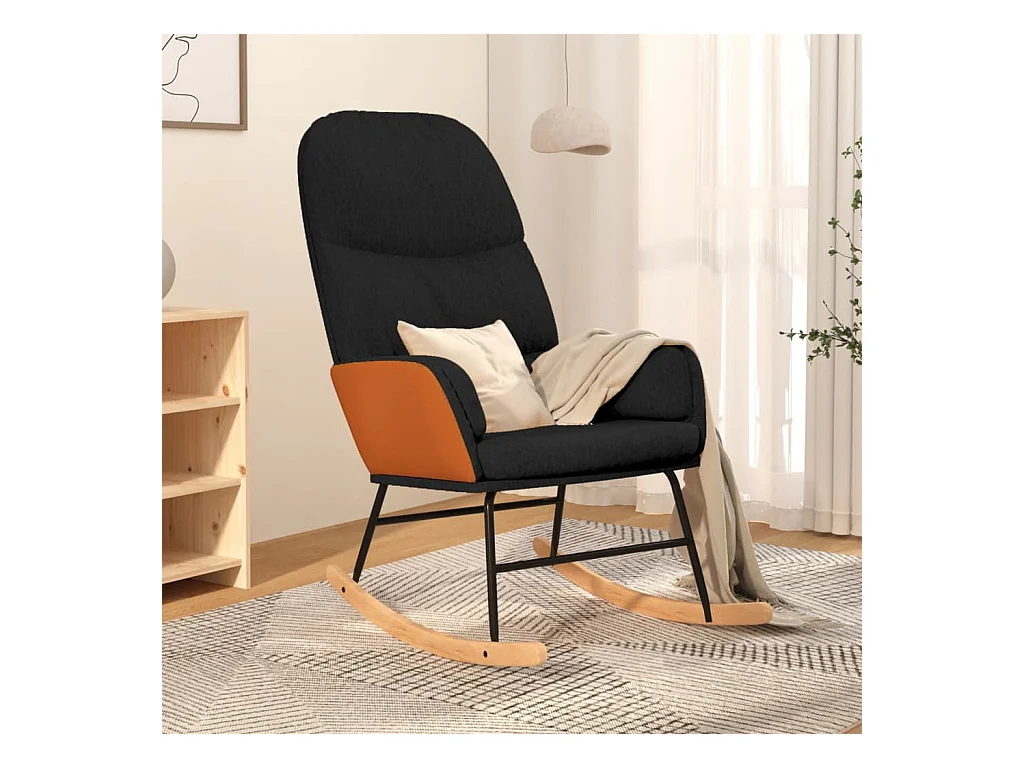 Fauteuil à bascule et pieds en bois massif d'hévéa Noir Velours