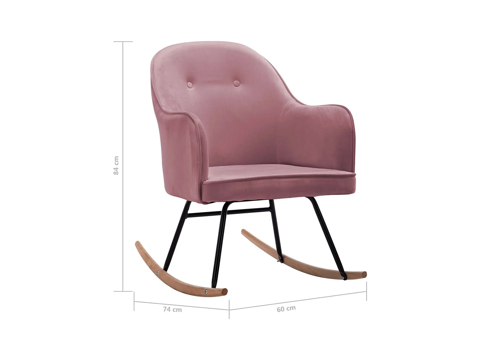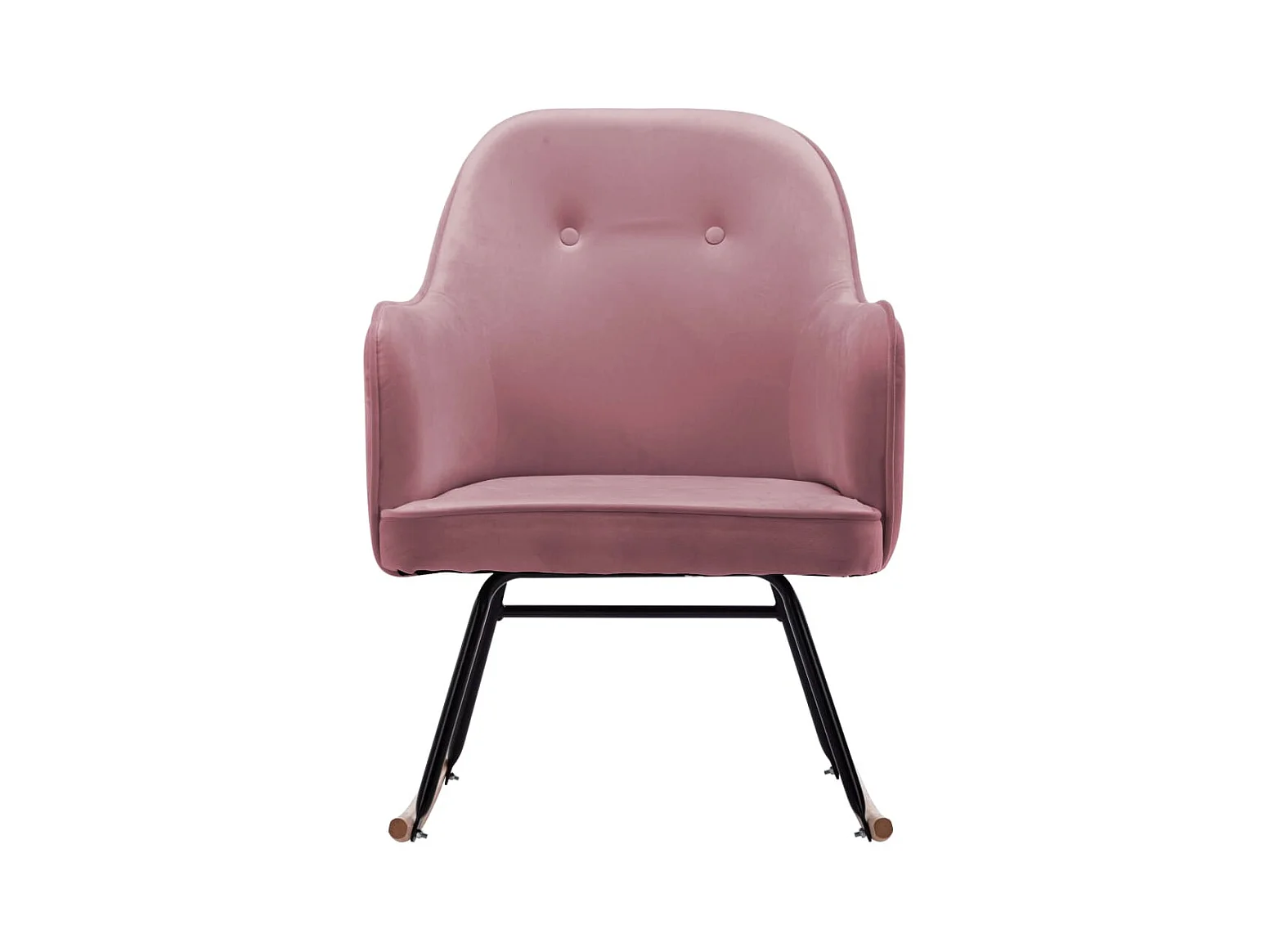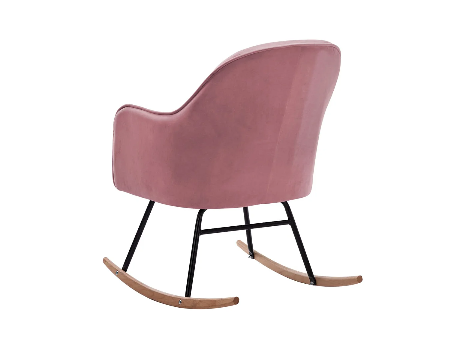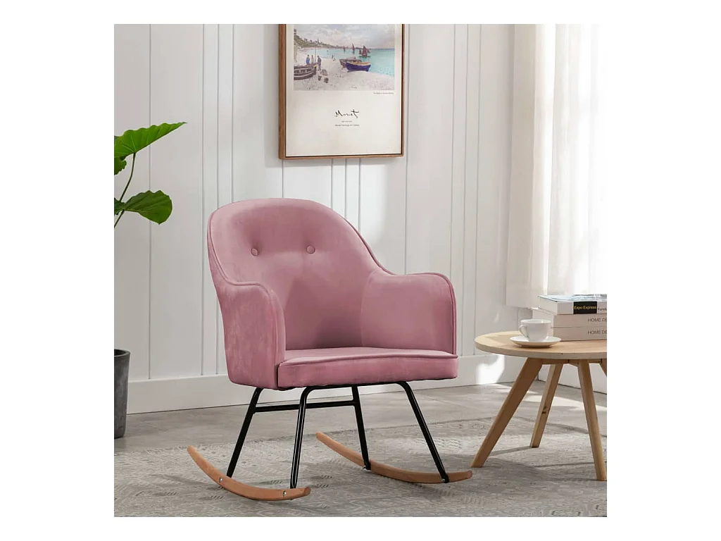 Fauteuil à bascule et pieds en bois massif d'hévéa Rose Velours