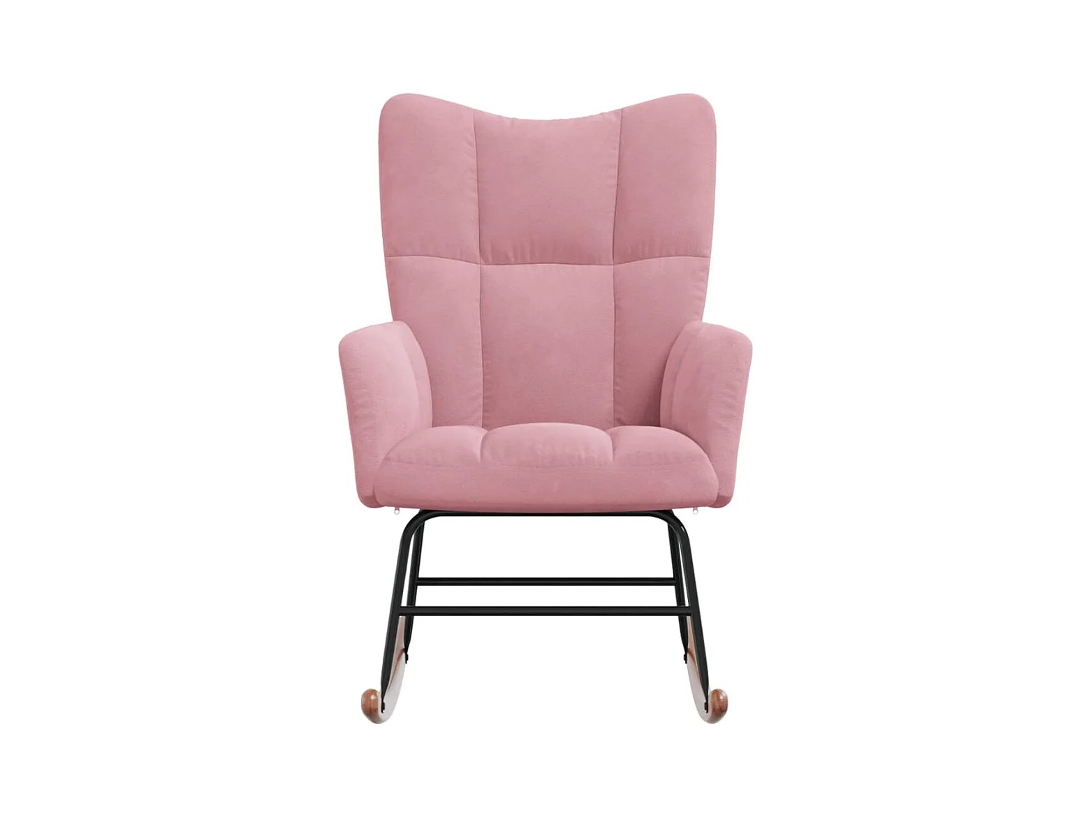 Fauteuil à bascule et pieds en bois massif d'hévéa Rose Velours