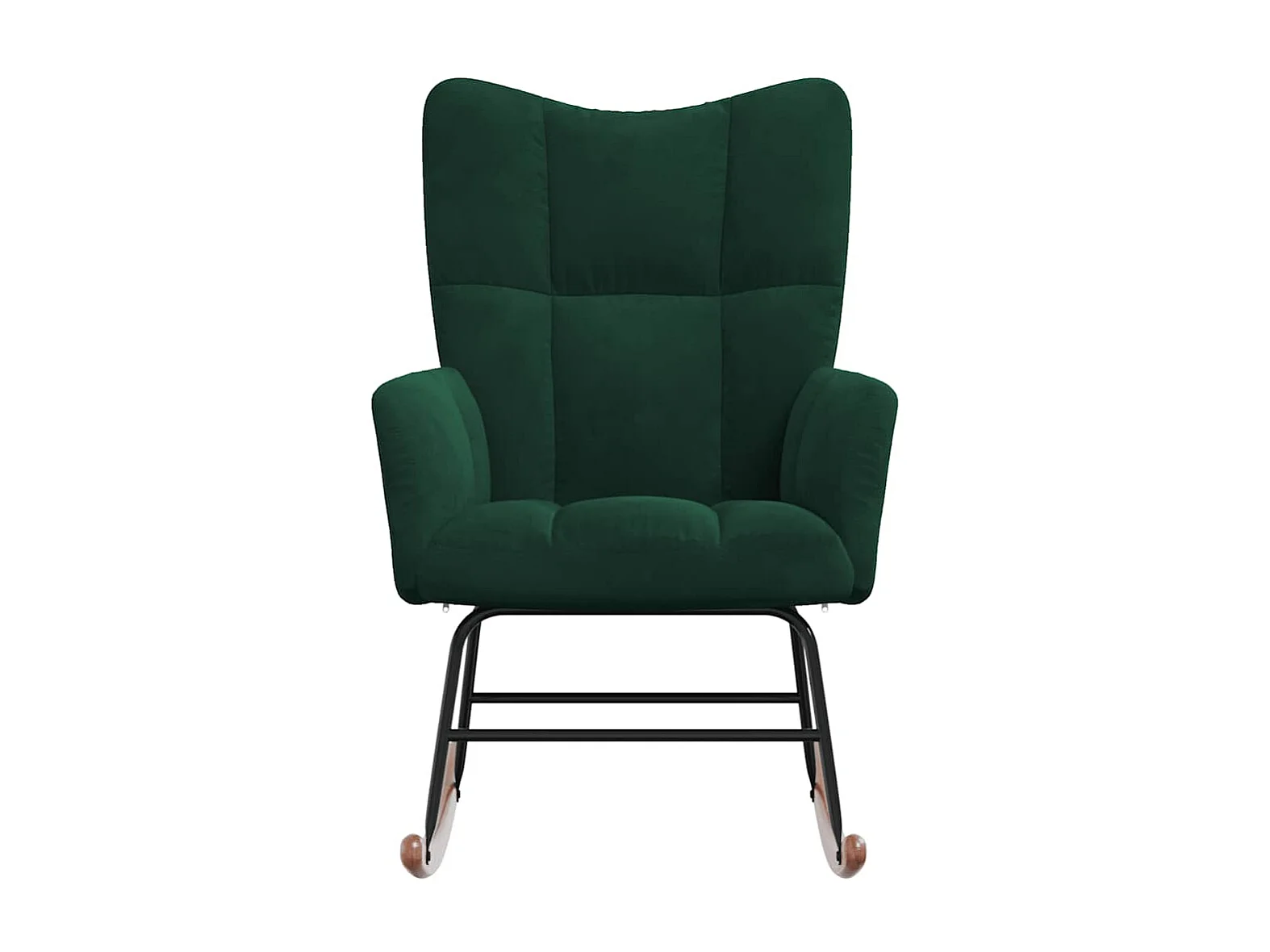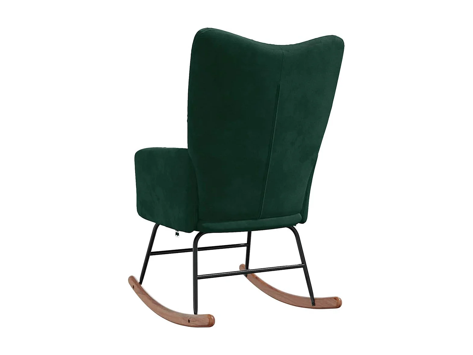 Fauteuil à bascule à oreilles en velours vert foncé bois massif