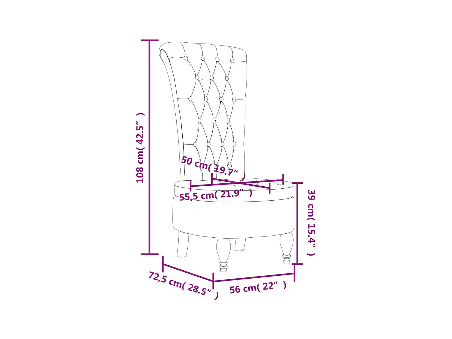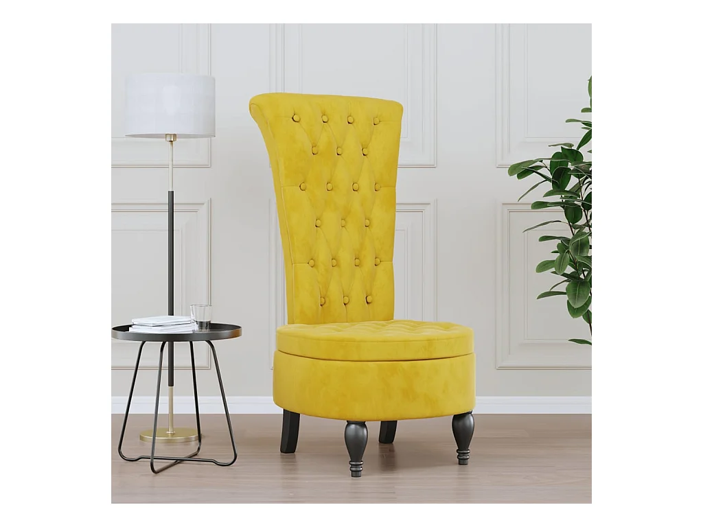 Chaise à dossier haut jaune velours conception de bouton