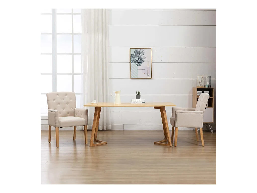 Chaise à manger avec accoudoirs Beige Tissu