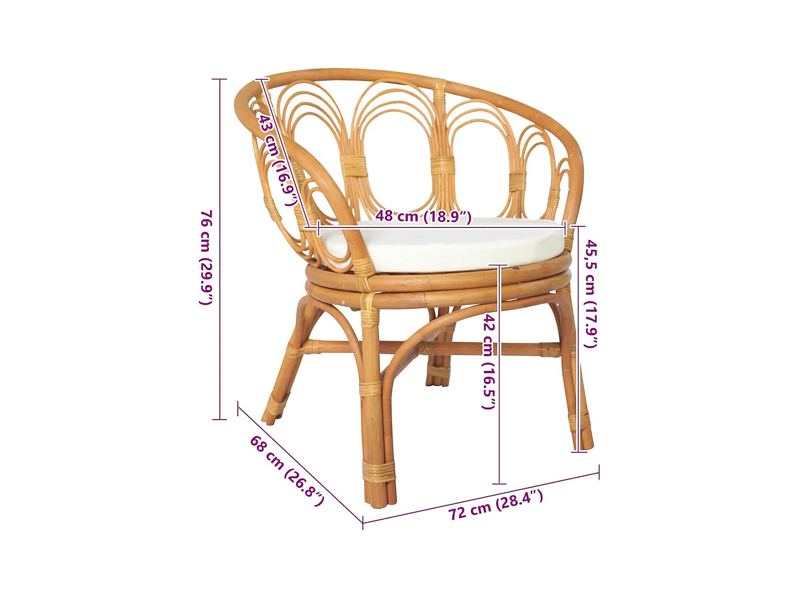 Chaise à manger avec coussin marron clair Rotin naturel et lin