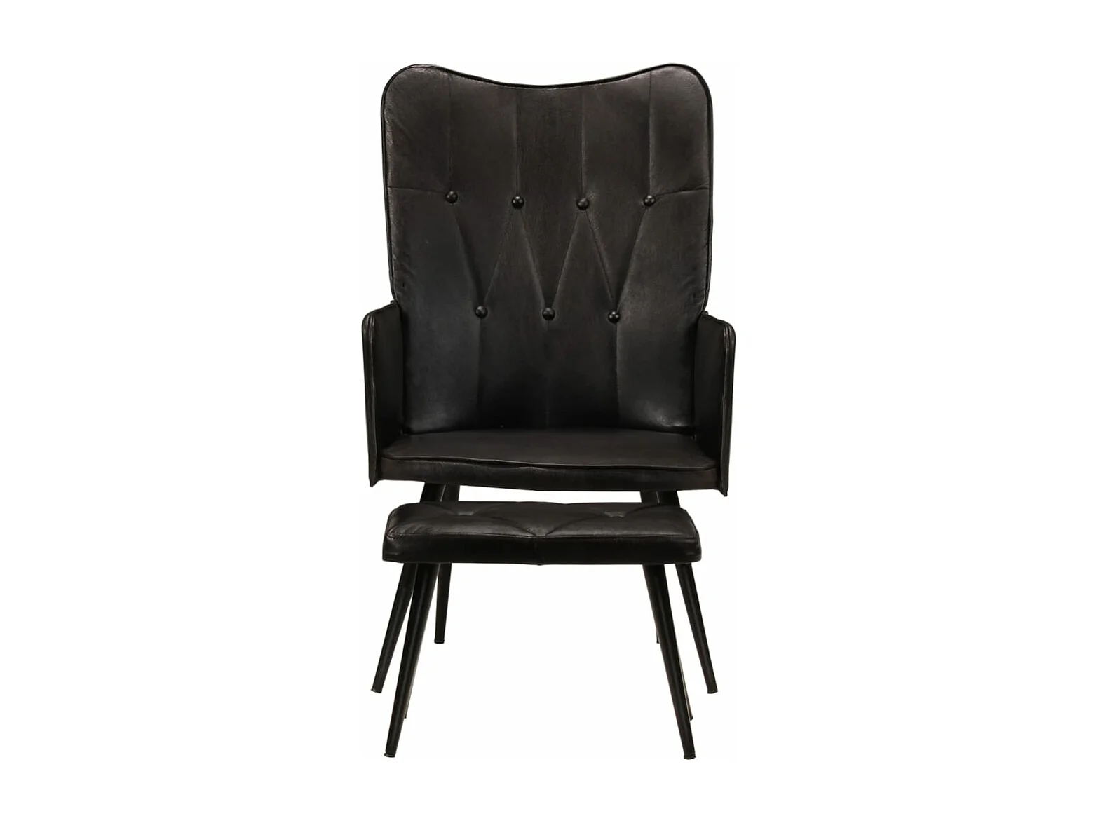 Chaise à oreilles avec repose-pied Noir Cuir véritable