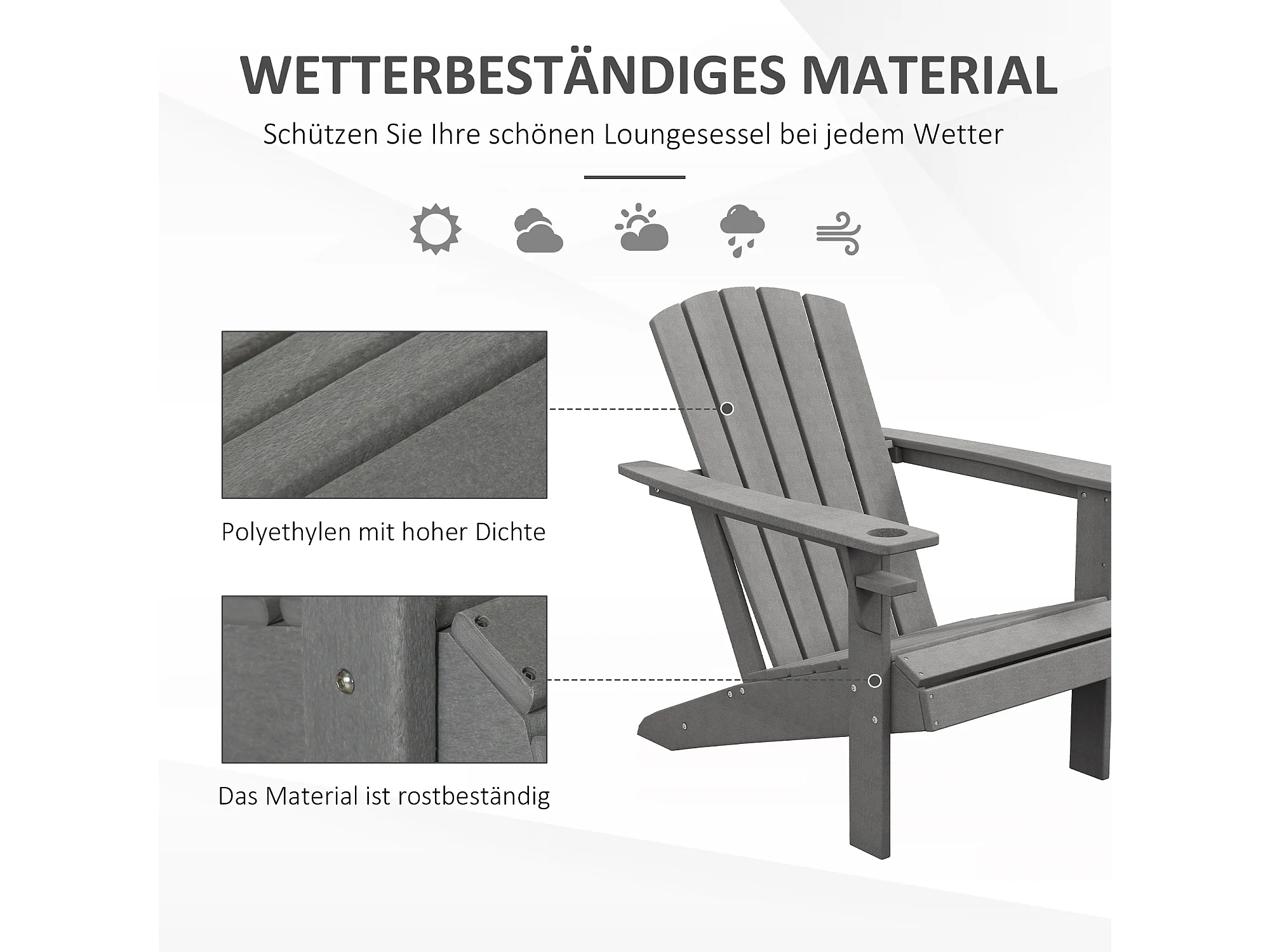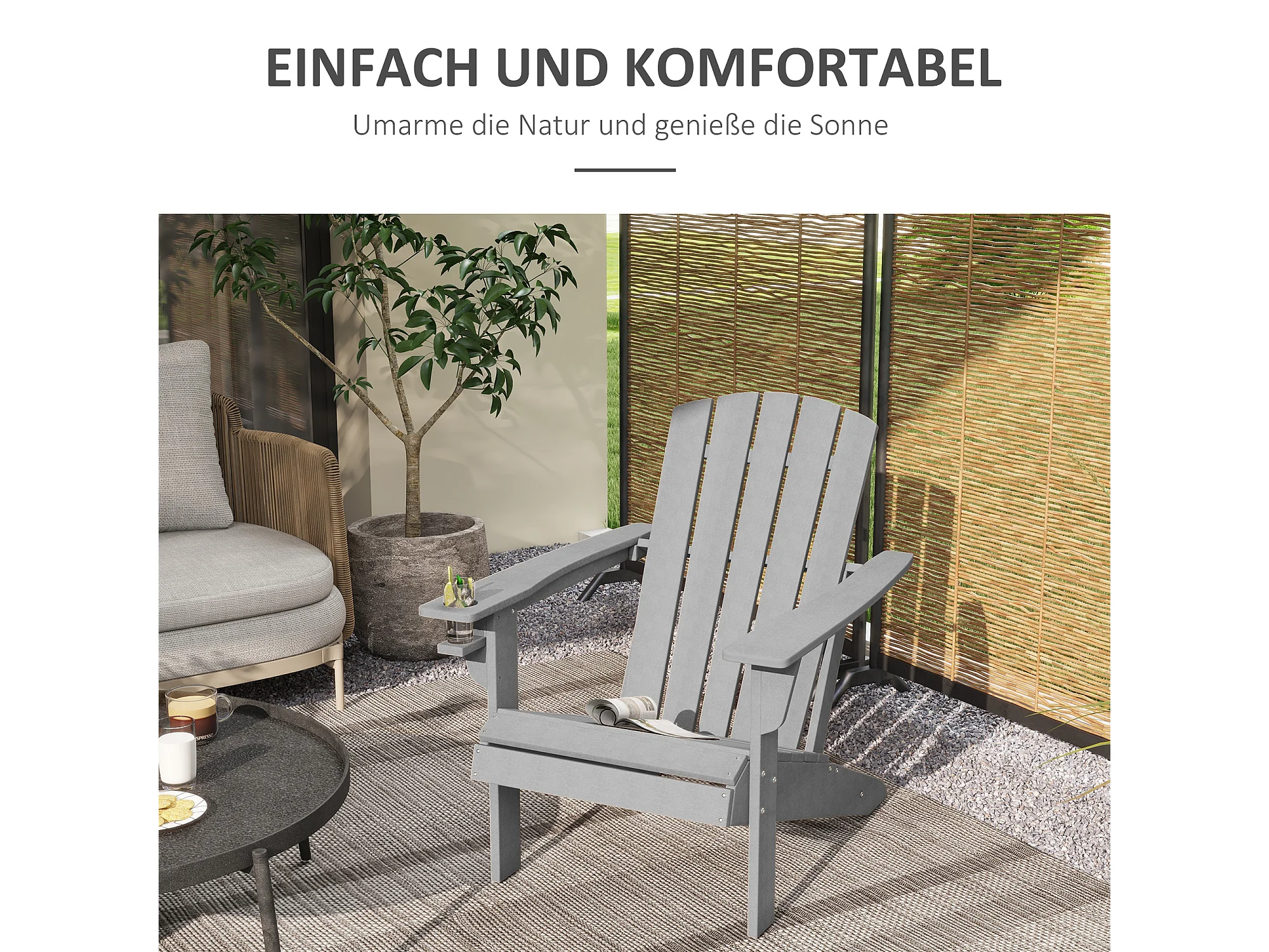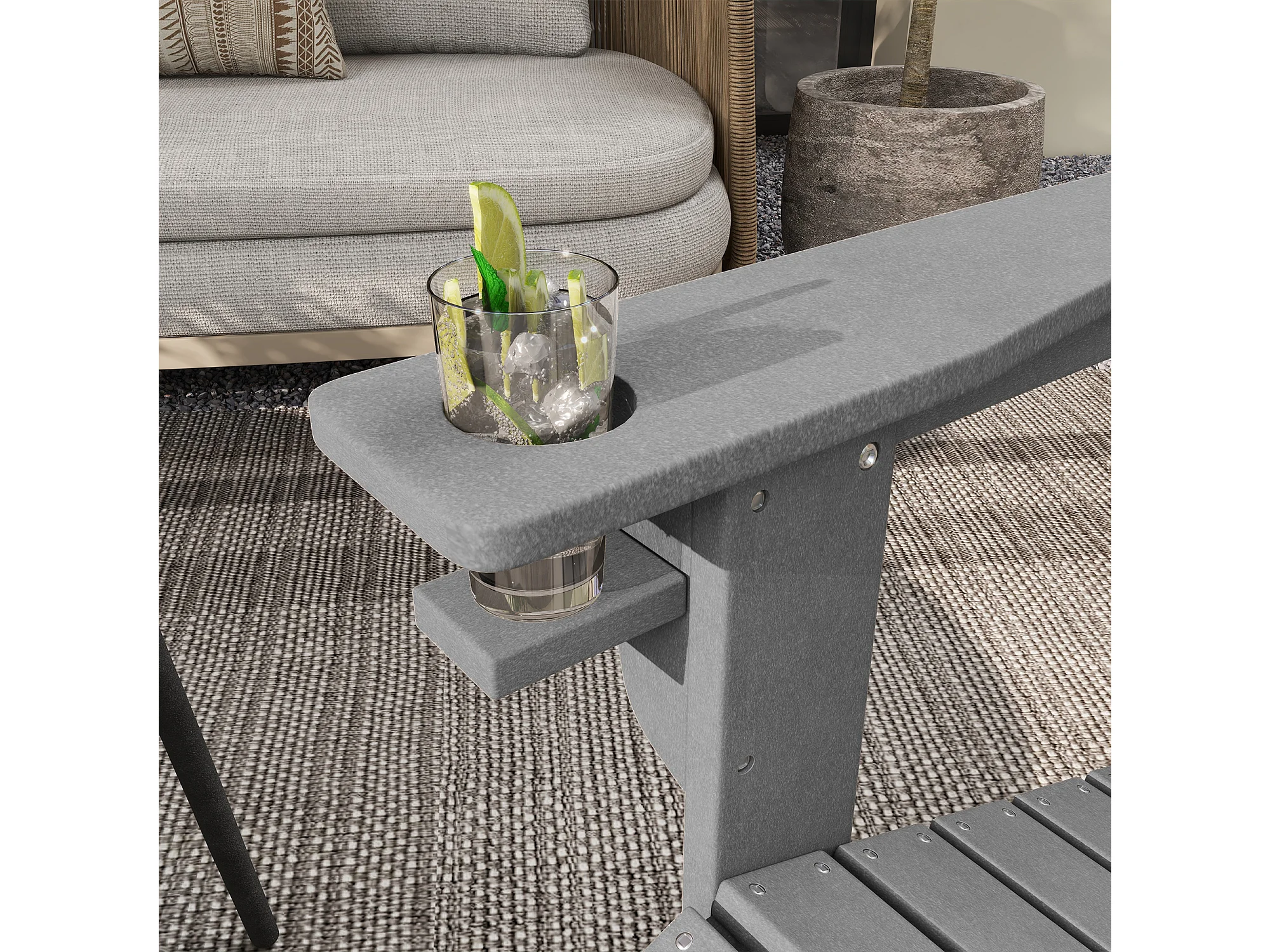Chaise Adirondack avec porte-gobelet, plastique HDPE, gris (75x87x90 cm)