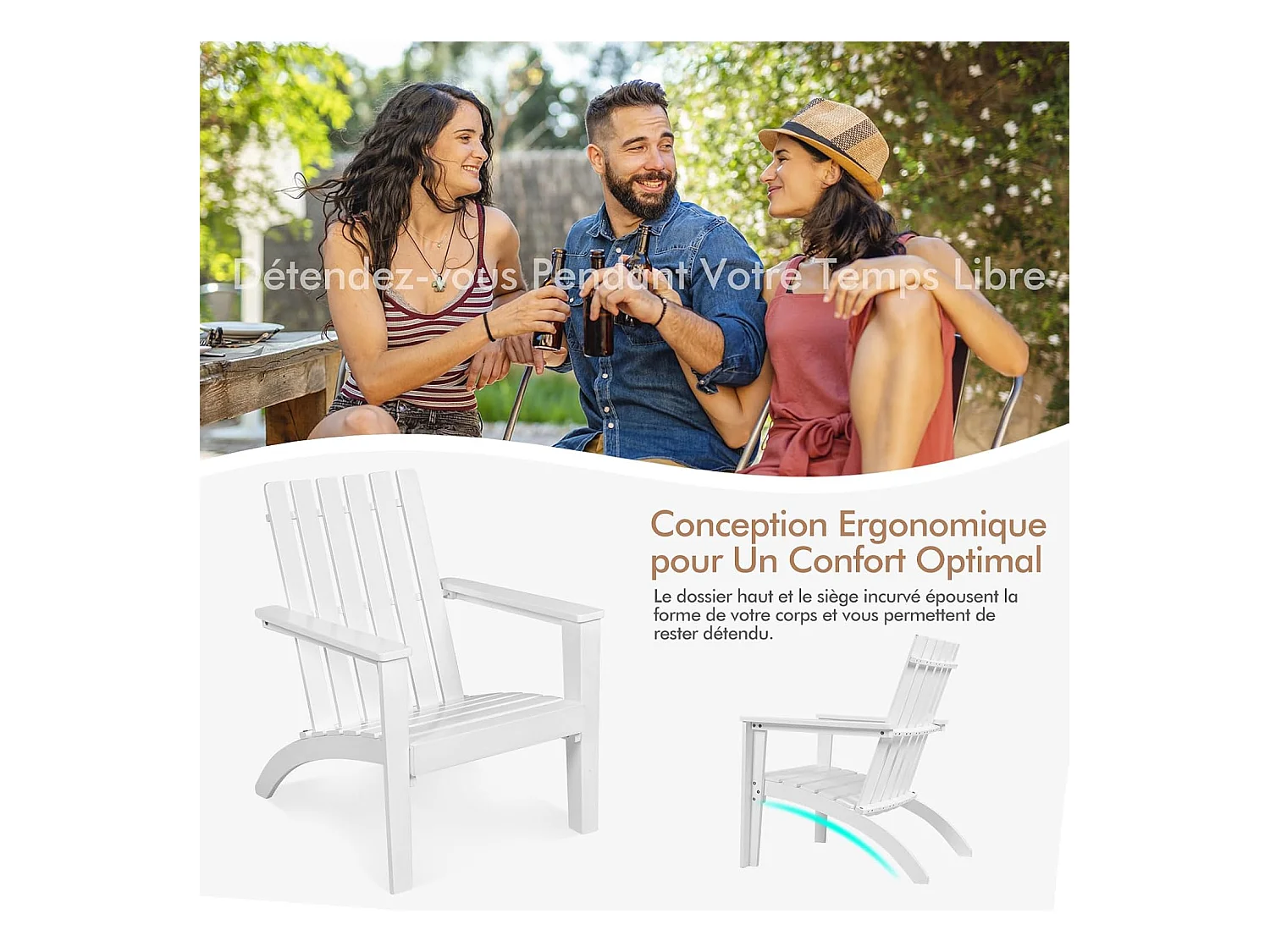 Chaise Adirondack blanc 69x85x90,5 cm bois massif de sapin FR486200