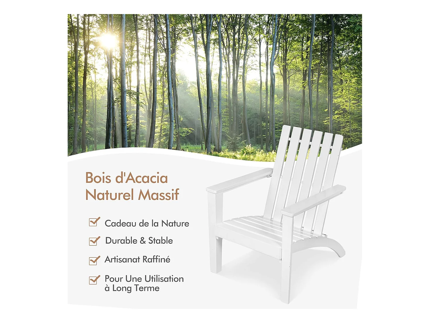 Chaise Adirondack en Bois d'Acacia, Fauteuil Adirondack Classique avec Accoudoir Ergonomique, Convient pour Balcon, Piscine, Cour, Terrasse, Jardin (Blanc)