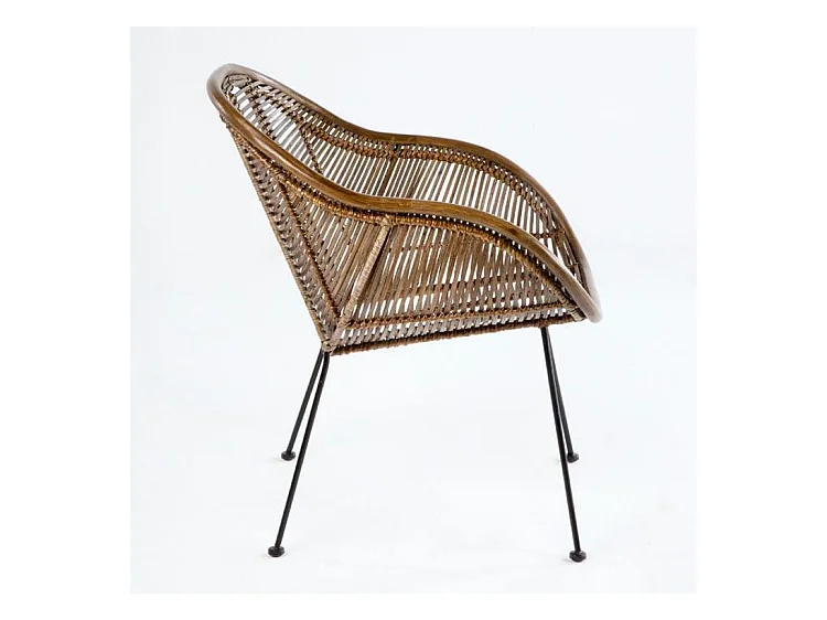 Chaise avec accoudoirs osier marron et pieds métal noir Gael
