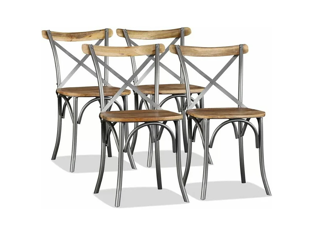 Chaise bois massif clair et métal Tiphen - Lot de 4