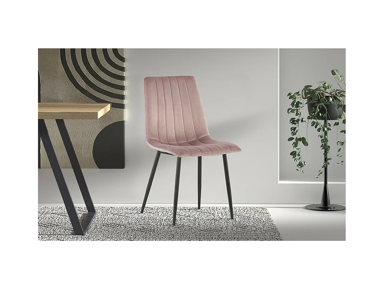 Chaise BRUCE Velours Rose, dimensions: H86 x L45 x P55 cm, idéal pour une salle à manger design et moderne