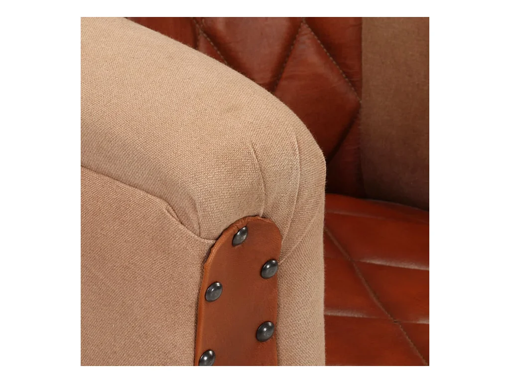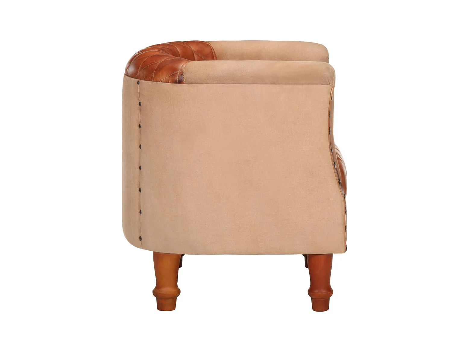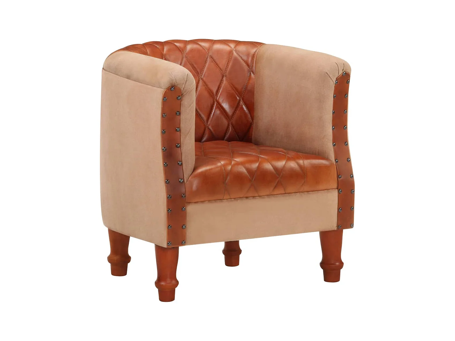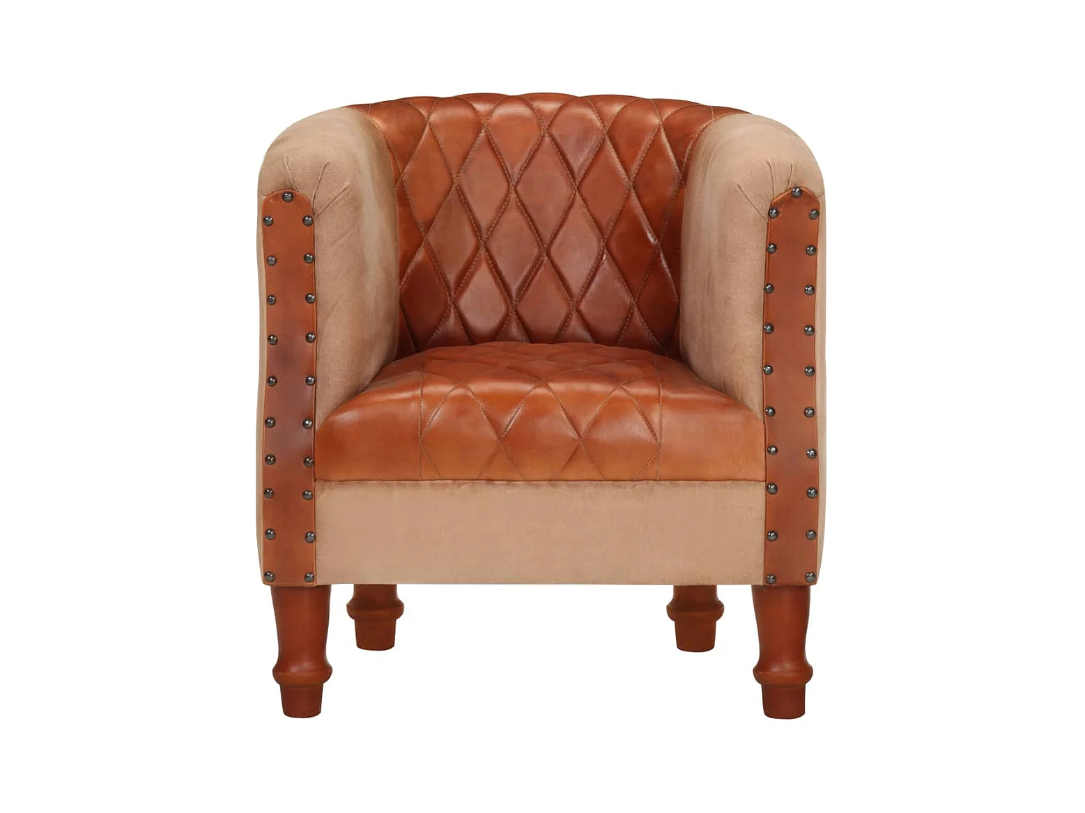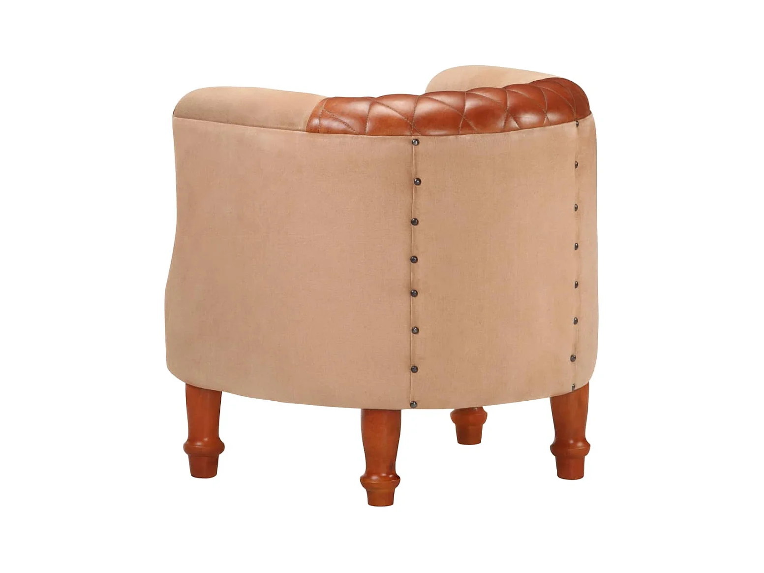 Chaise cabriolet marron cuir véritable bois de manguier massif