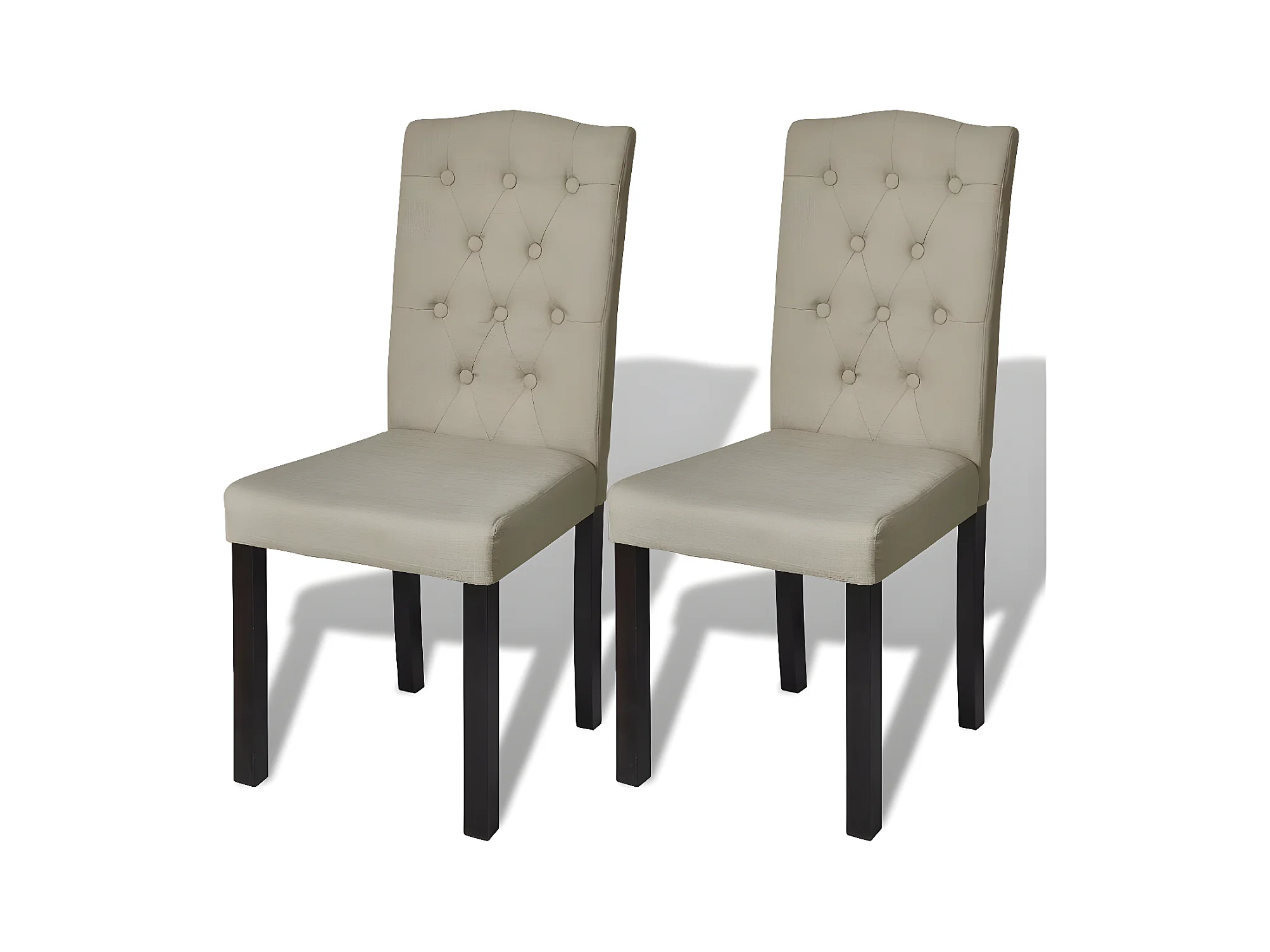 Chaise capitonnée tissu taupe et pieds bois noir Billa - Lot de 2