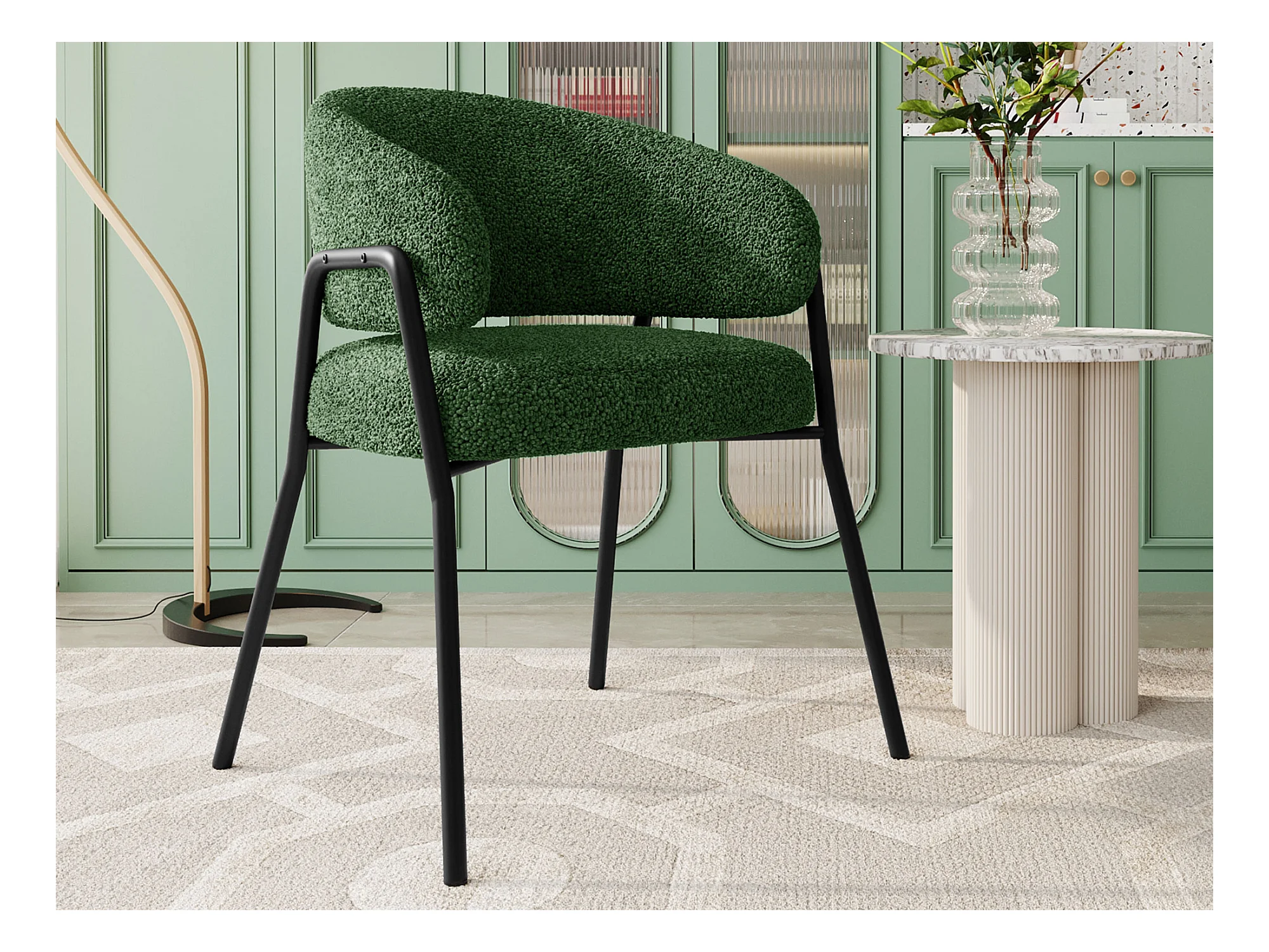 Chaise, Chaise de salle à manger, Chaises de maquillage - Velours et métal - Vert foncé - BLITZ