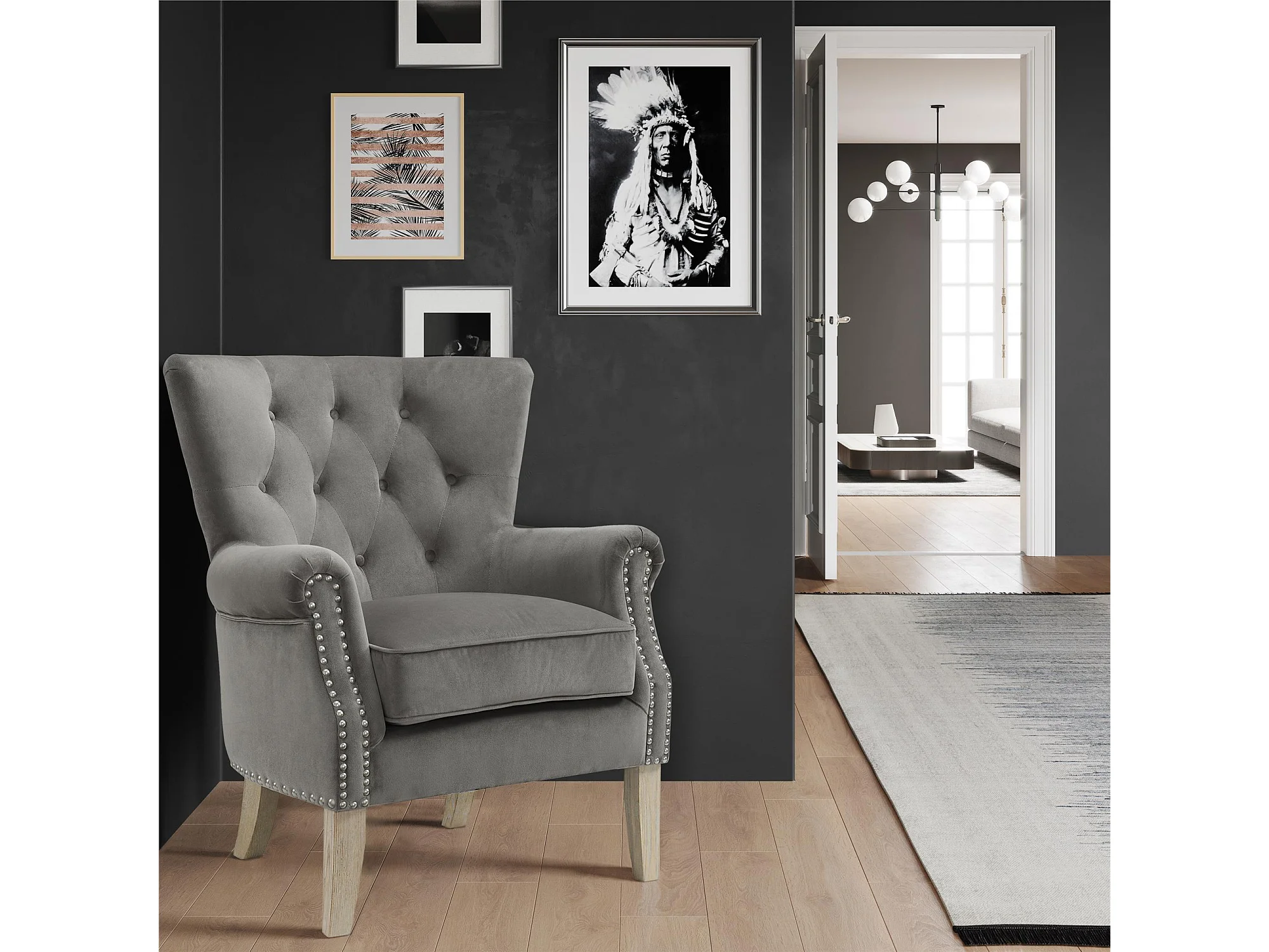 Dorel | Chaise longue tapissée en tissu gris
