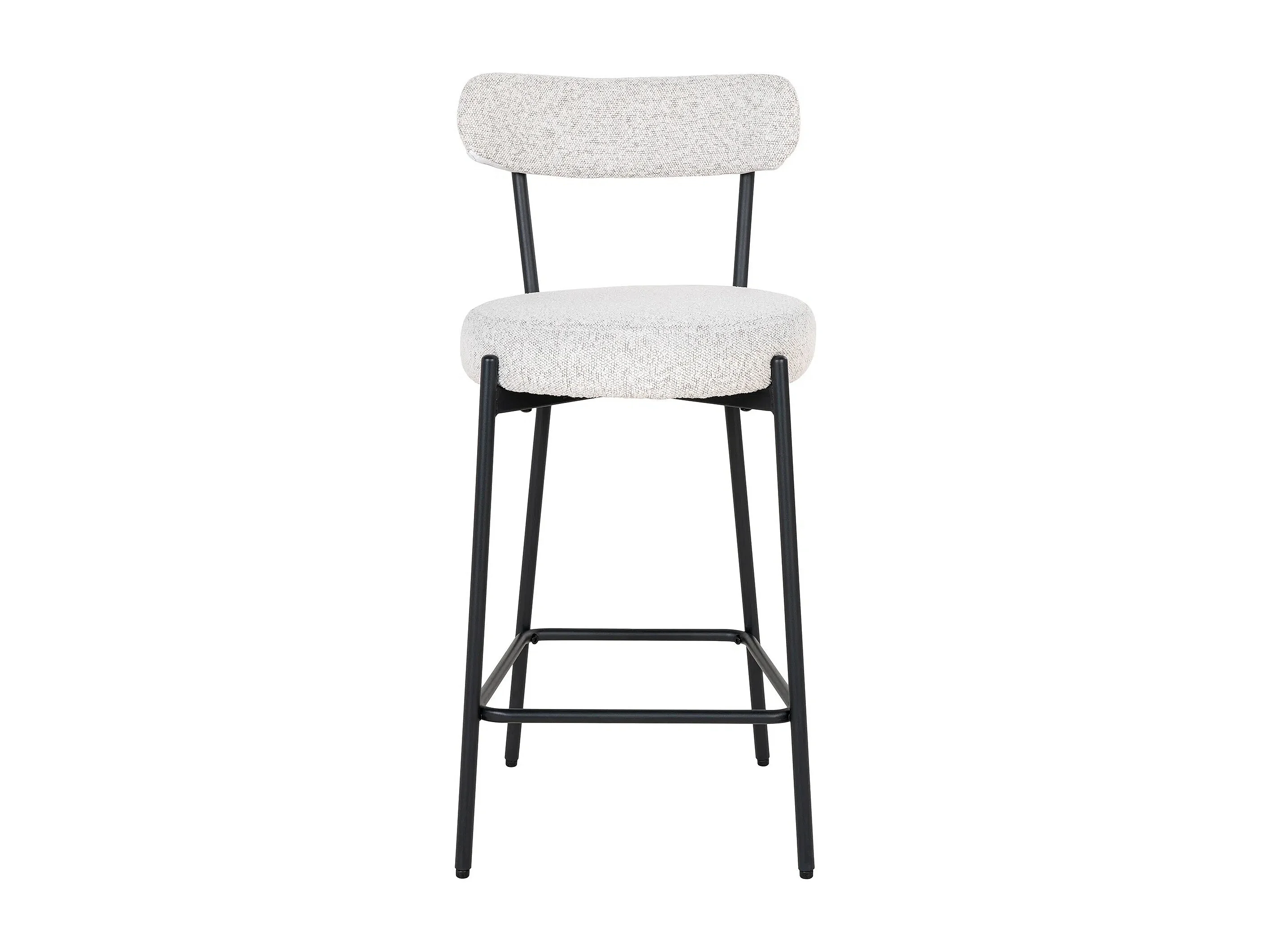 Chaise de comptoir LISE – Tissu bouclé coloris sable – Pieds en métal noir – Style design/industriel