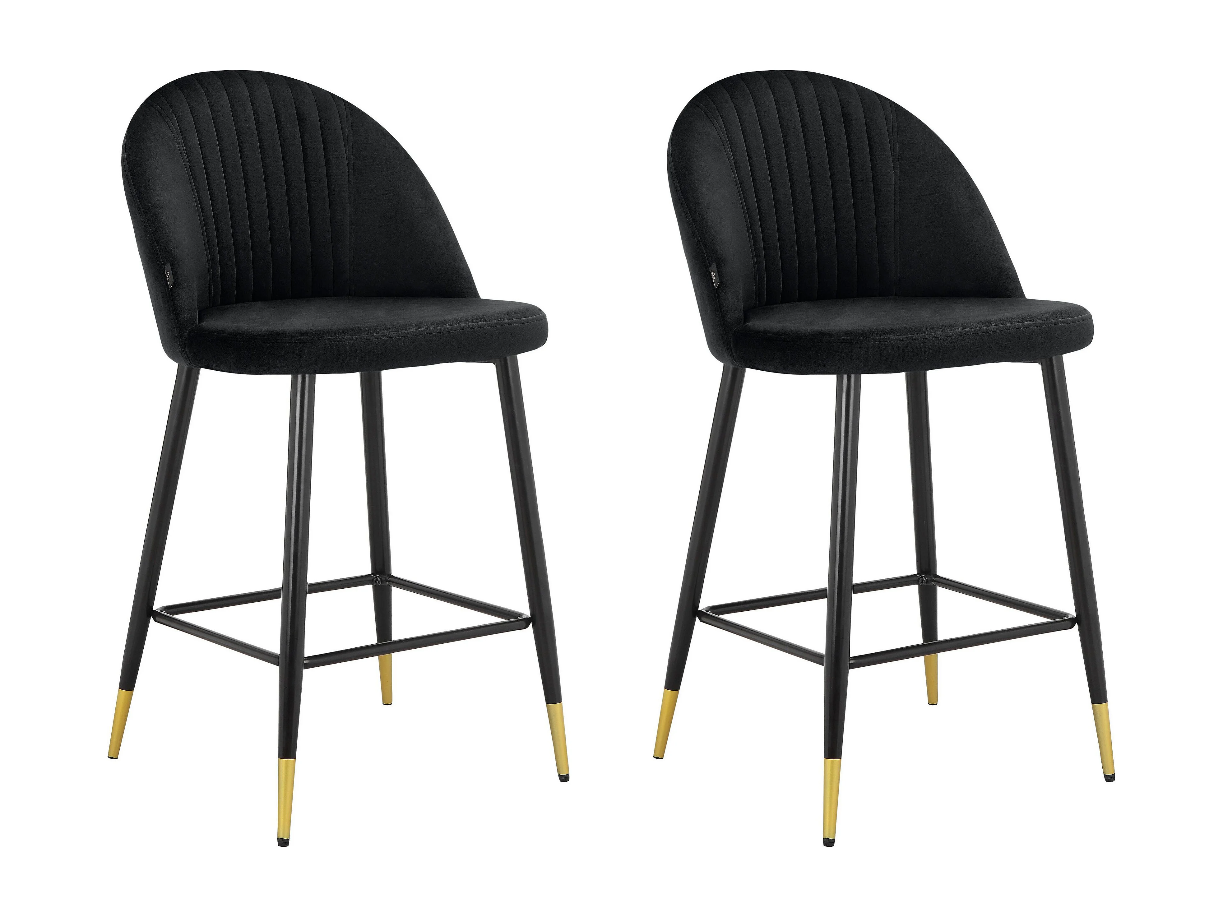 Marlis|Lot de 2 tabourets de bar en velours noir
