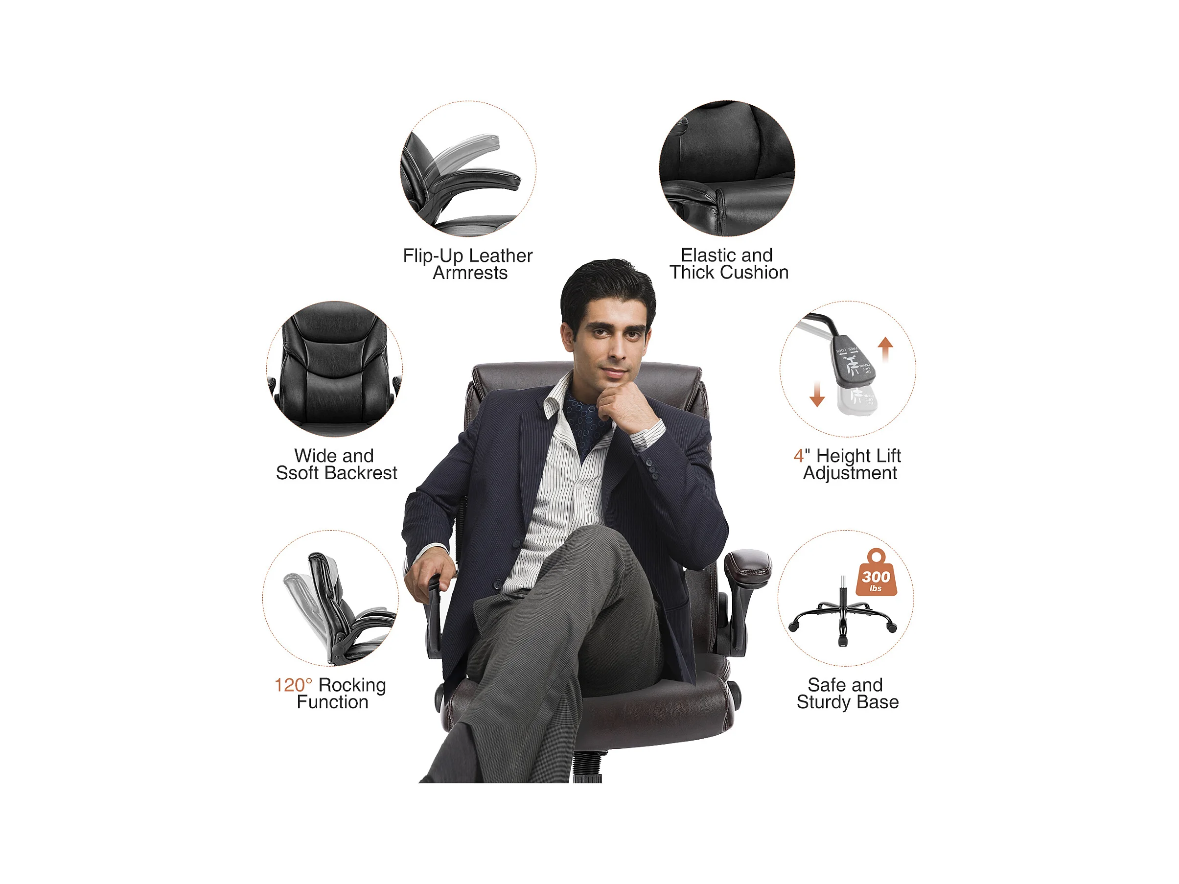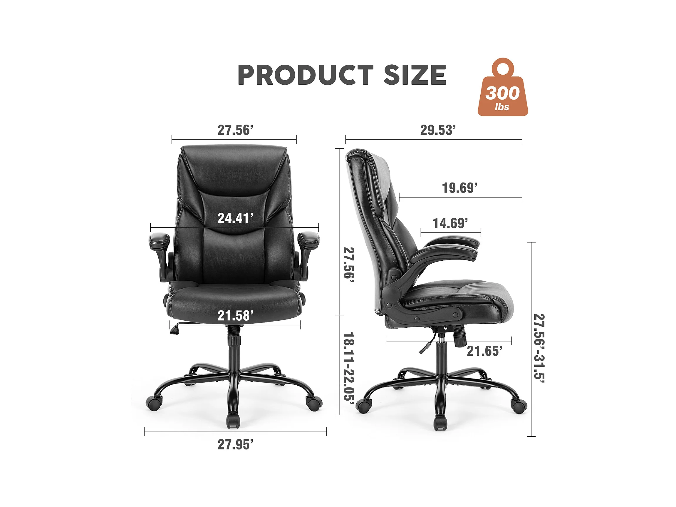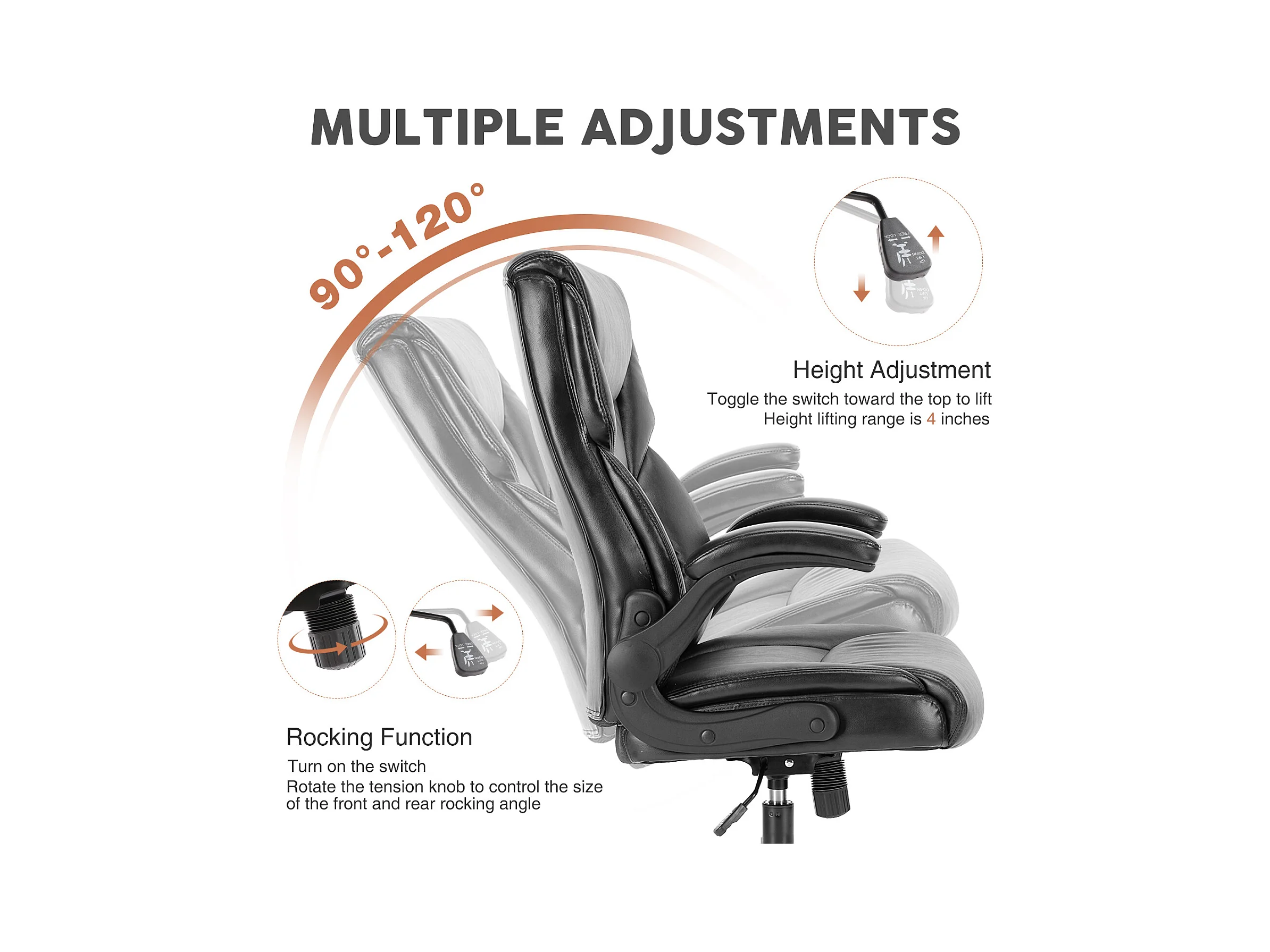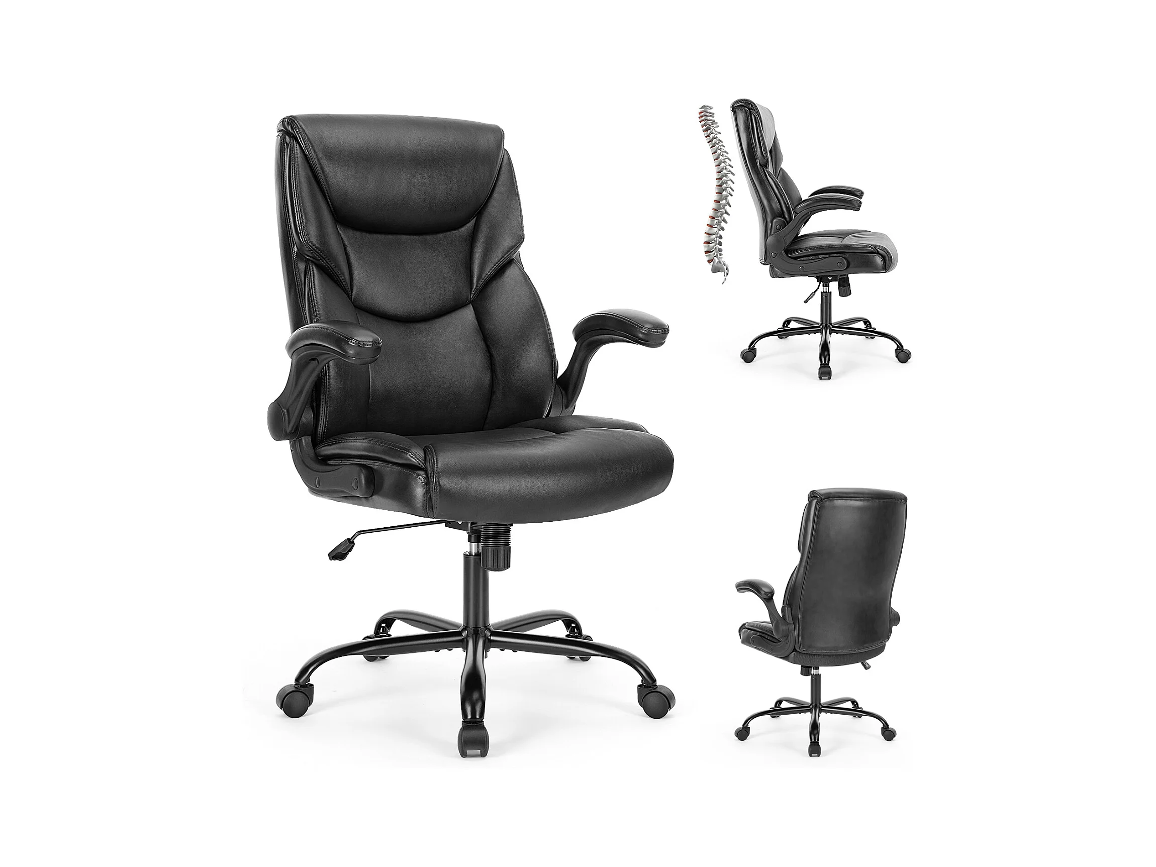 Chaise de bureau avec accoudoir réglable, support lombaire, base métallique solide, PU, noir