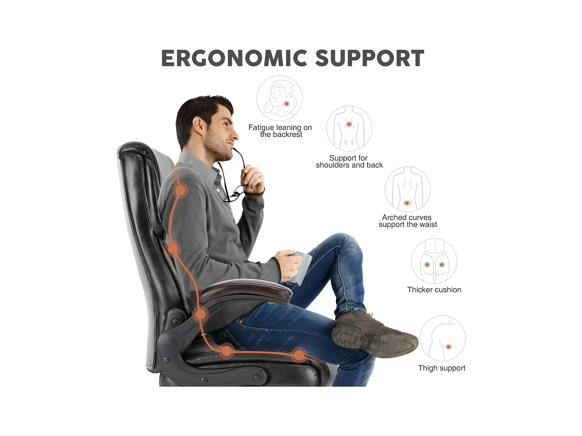 Fauteuil de bureau pivotant avec support lombaire et accoudoirs rembourrés, repose-pieds rétractable ergonomique, noir