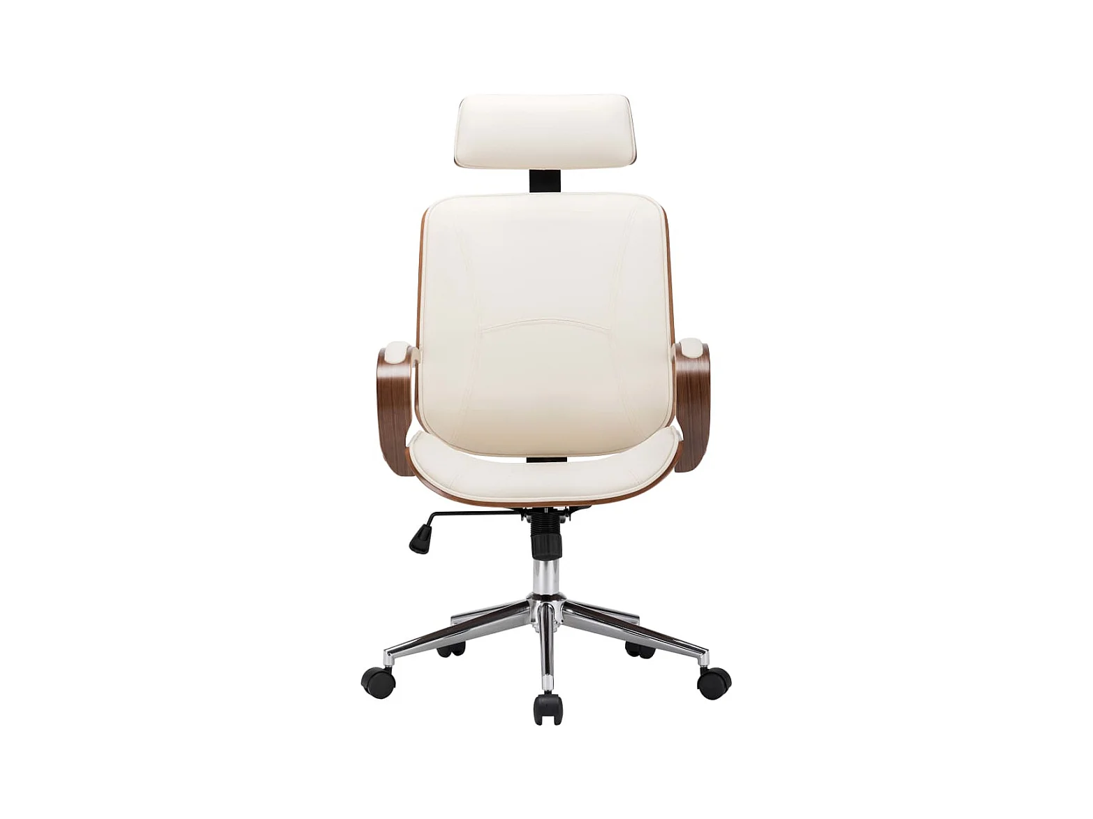 Chaise de bureau avec appuie-tête Crème Similicuir et bois