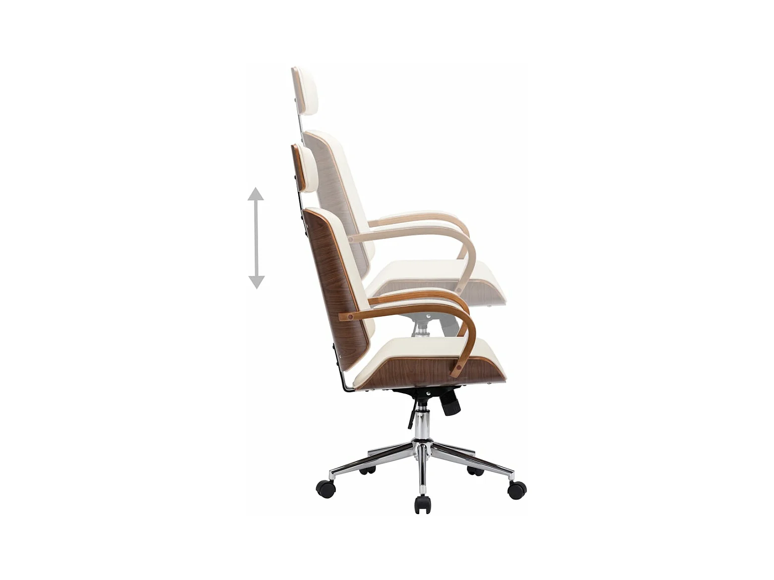 Chaise pivotante de bureau Crème Bois courbé et similicuir