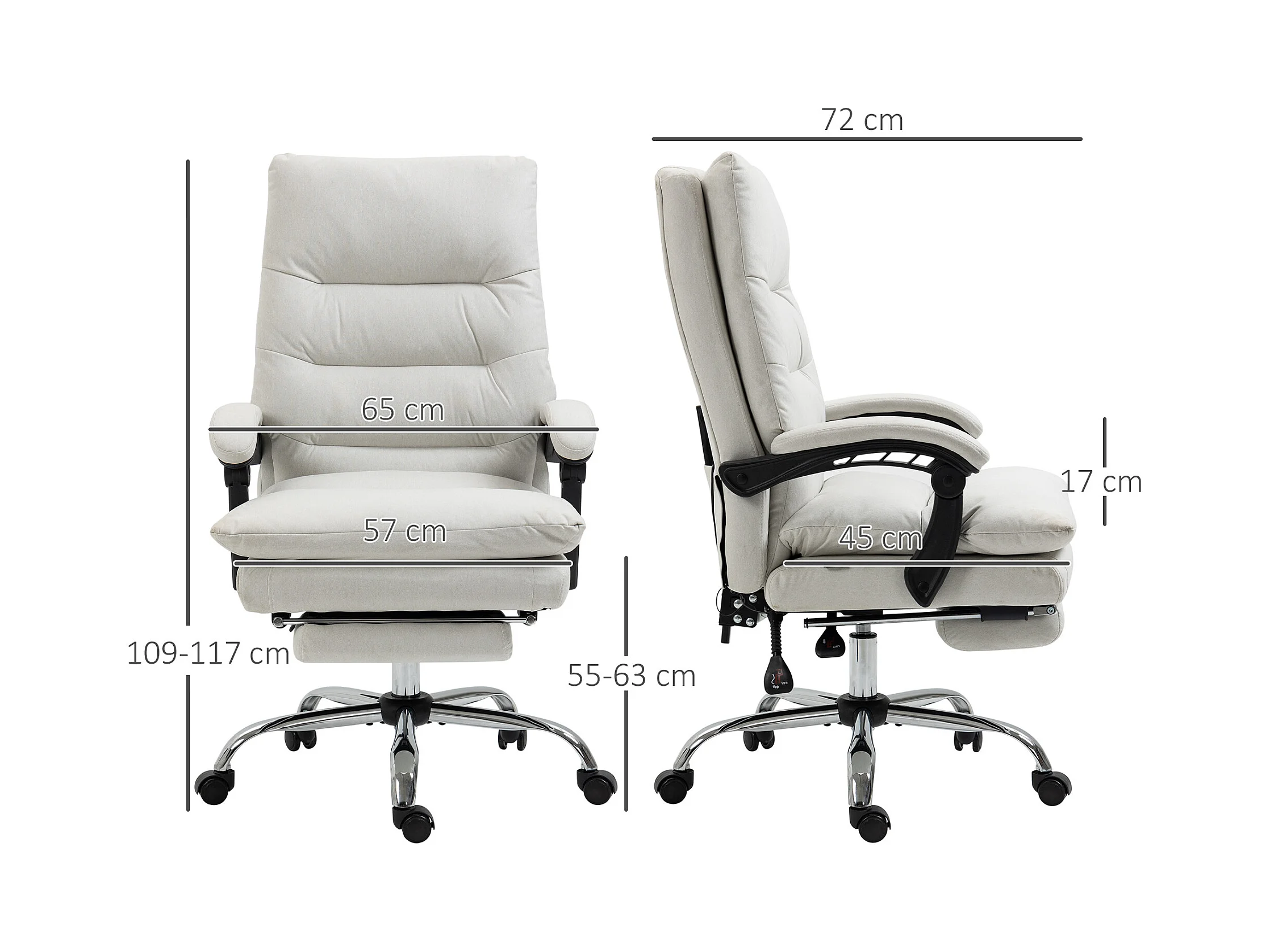 Chaise de bureau avec fonction massage, dossier inclinable à 135°, réglable en hauteur, simili cuir crème (65x72x109-117 cm)