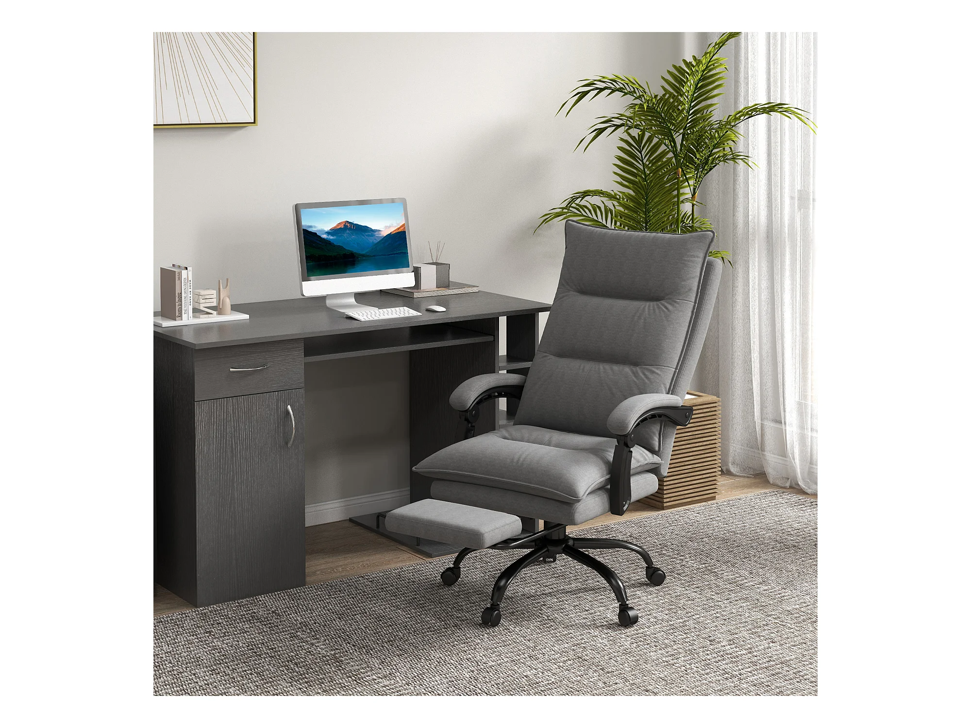 Fauteuil de bureau ergonomique avec repose-pieds, hauteur réglable, assise rembourrée, supporte jusqu'à 135 kg, gris, idéal pour bureau