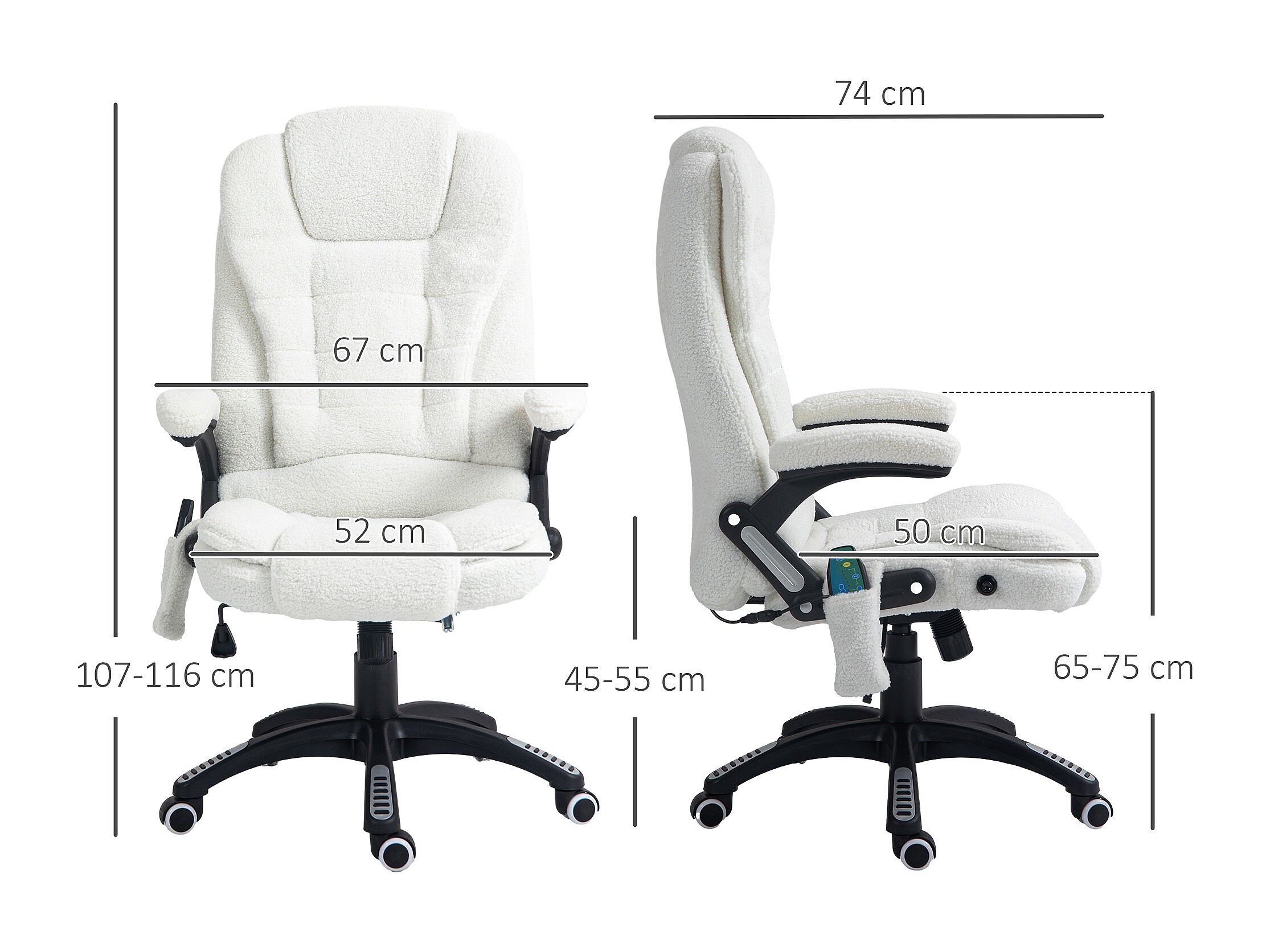 Chaise de bureau avec massage et chauffant, réglable, repose-pieds inclus, revêtement velours blanc, confortable et ergonomique