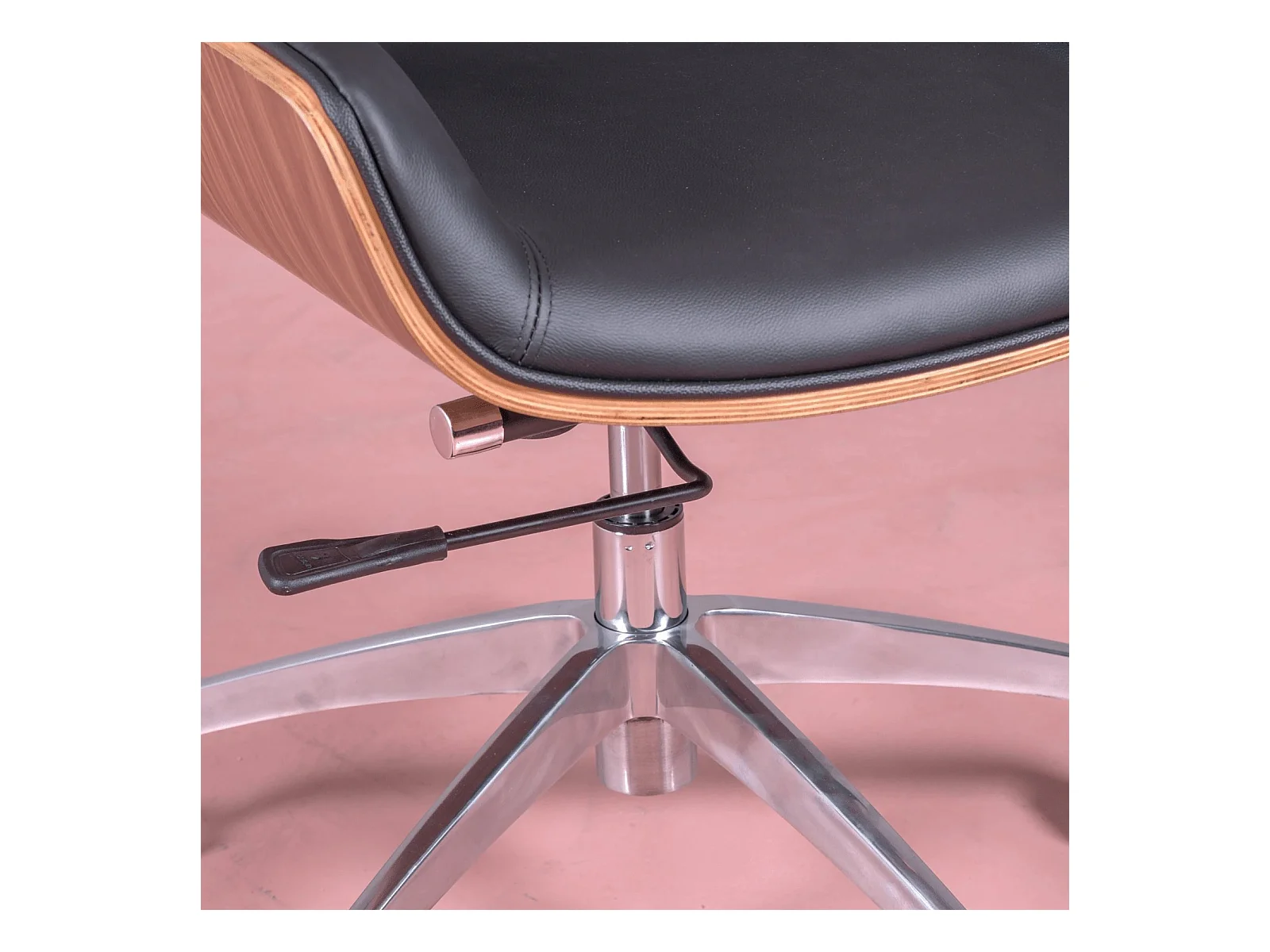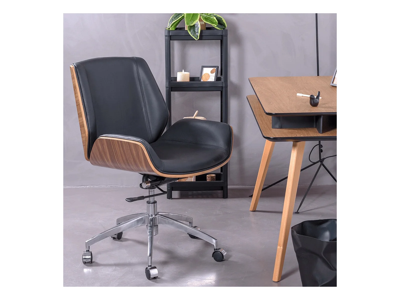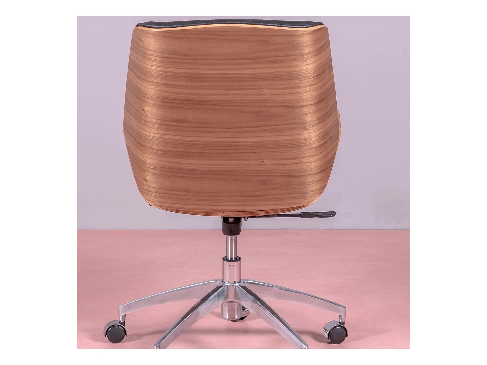 Chaise de bureau en bois de noyer et recouverte de cuir italien - Nordic - Noir