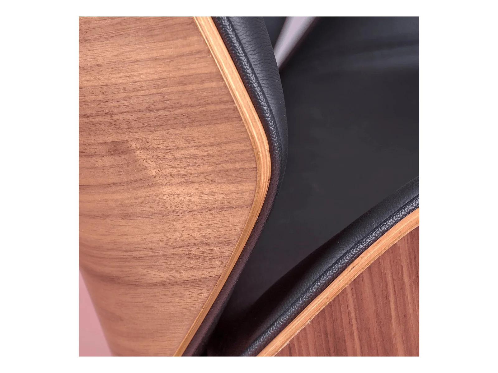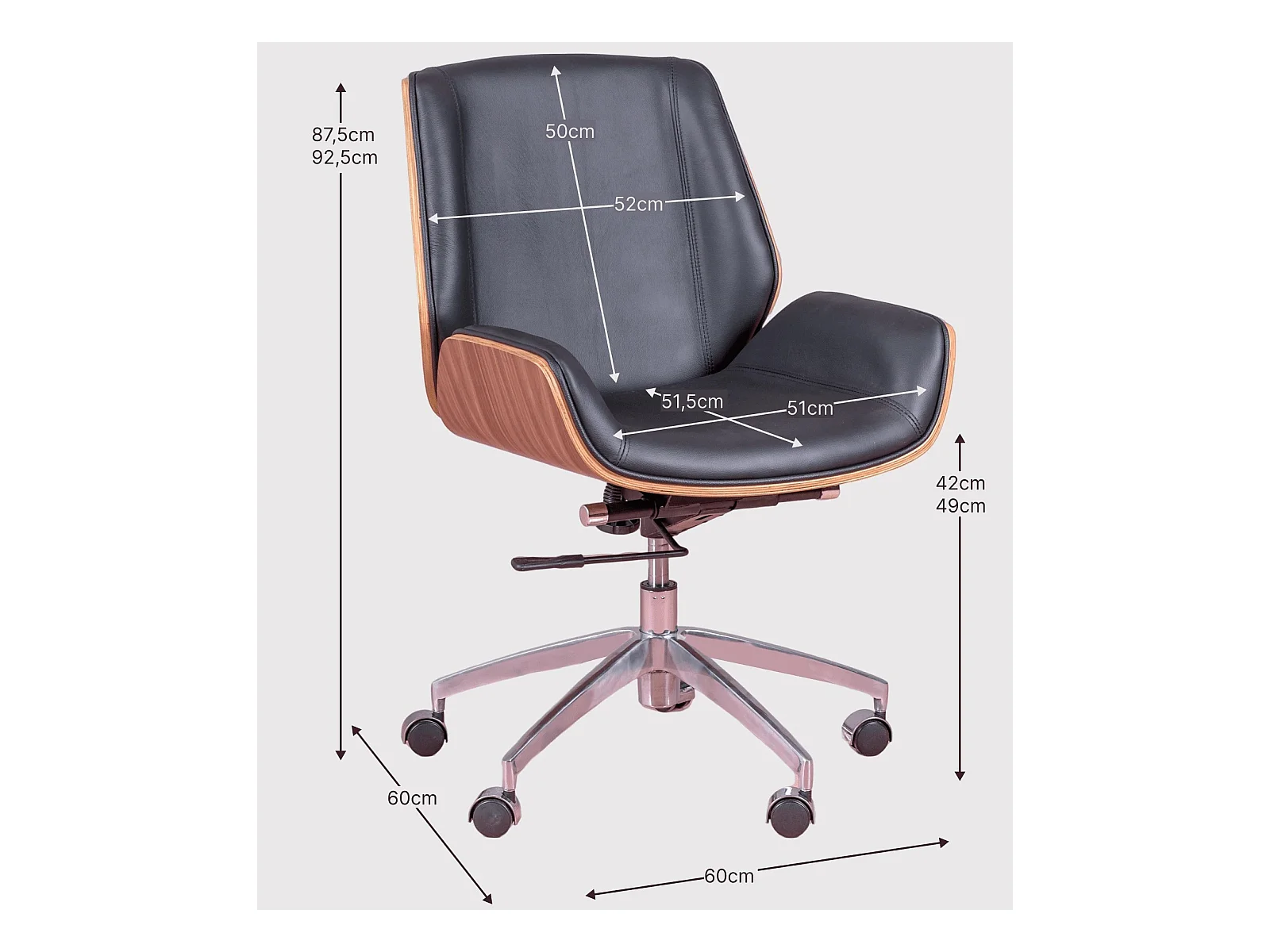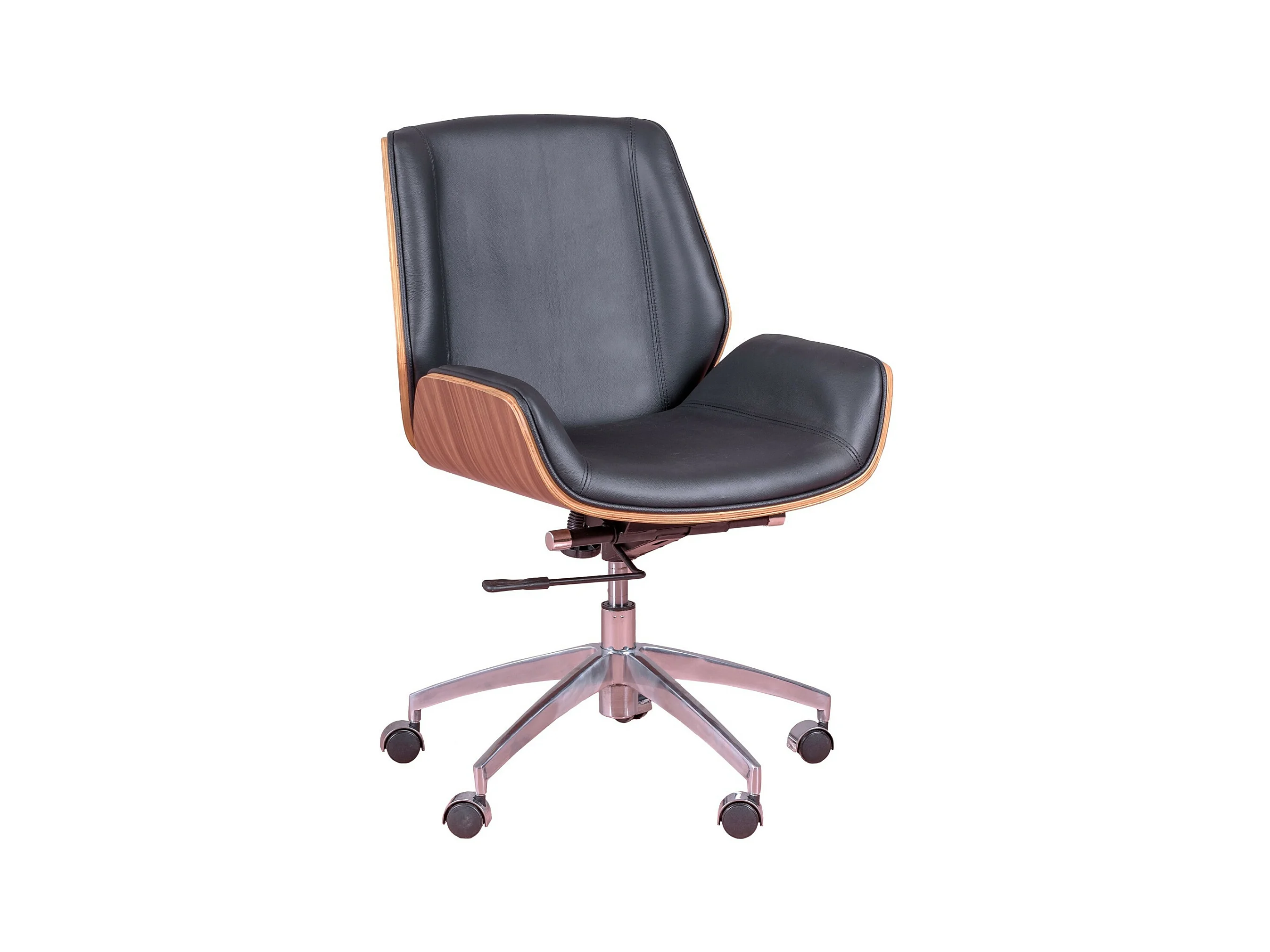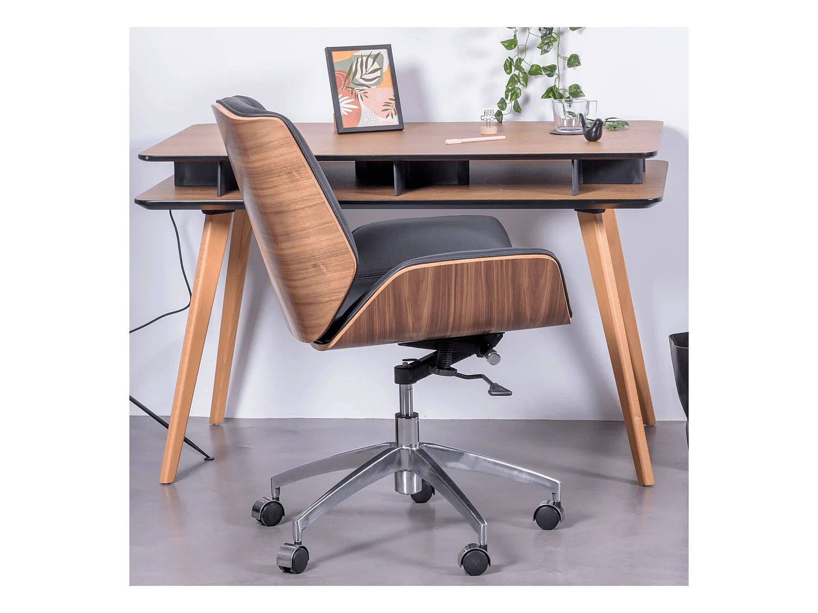 Chaise de bureau en bois de noyer et recouverte de cuir italien - Nordic - Noir