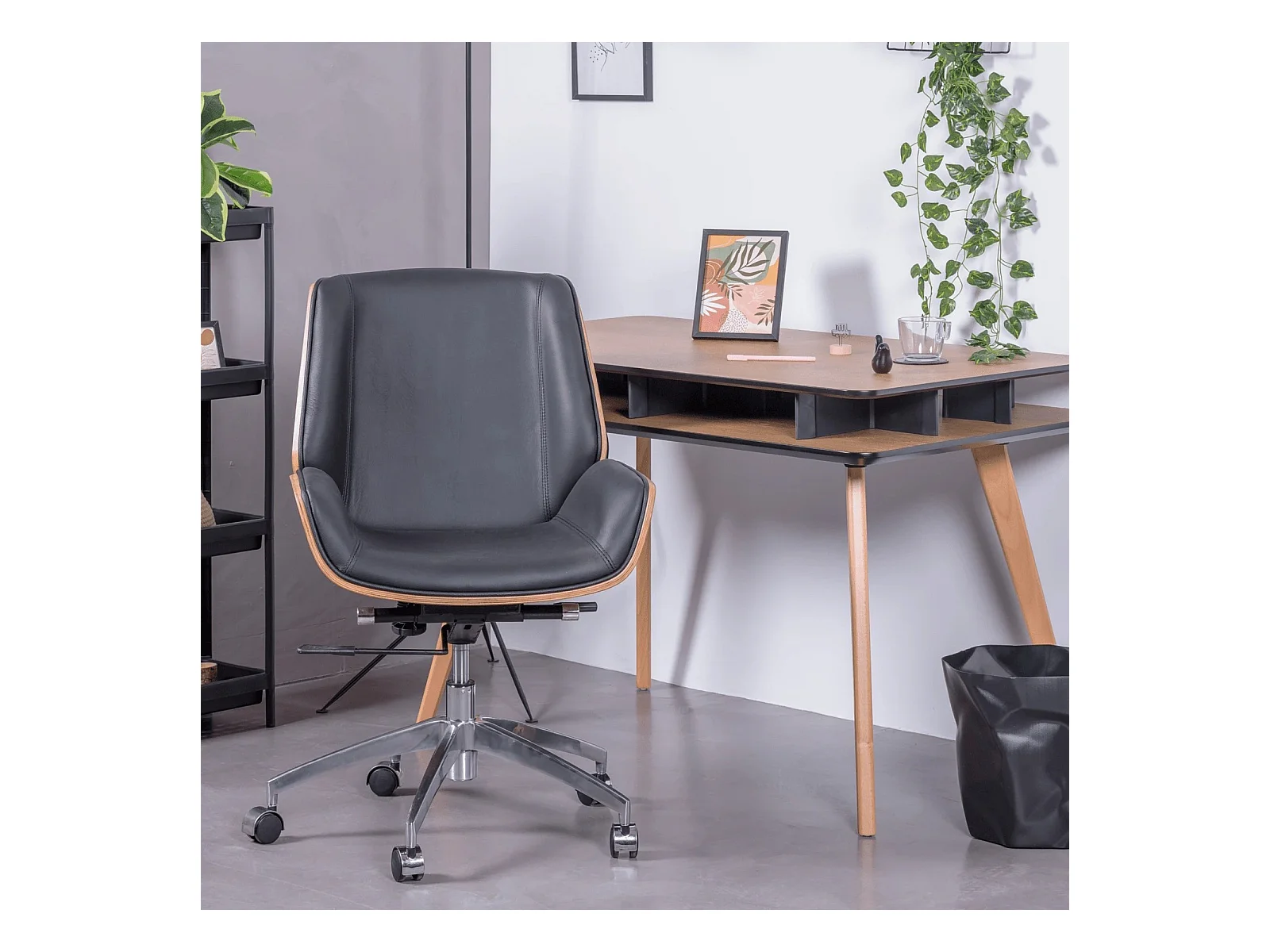Chaise de bureau en bois de noyer et recouverte de cuir italien - Nordic H - Noir